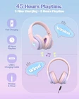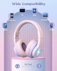 Kids Bluetooth Headphones, Colorful Wireless Over Ear Headset with LED Lights, Built-in Mic, 45H Playtime, 85dB/94dB Volume Limited Headphones for Boys Girls iPad Tablet School Airplane Pink Purple 3 Lighting Modes & Unique Design: The lights are displayed on both sides of the headset, and there are three modes to switch by one button. designed with Unique gradient color, this Bluetooth headphones are also the child's favorite gift! Volume Control & Built-in MIC: There is no need to worry about hearing damage of your children, even without parental supervision with 85dB/94dB Volume Limited, With the built-in microphone, you can free your hands to make calls/ end calls and communicate with others with just one button. 45H Playtime & USB C Charging: comes with USB C Charging Cable, Thanks to fast charging technology, 5 minutes gives you 5 hours of playtime! when the headset is in low power, you can connect the AUX cable (included) so that you can enjoy it endlessly! BLUETOOTH 5.0 & WIde Compatibility: Say goodbye to tangled wired headphones. This kids wireless headphones adopts the latest Bluetooth 5.0 technology to ensure a stable connection. Easy connect by one button, compatible with all electronics devices with Bluetooth, such as cell phones, iPad, computer, laptop, pc, tablets, etc Comfortable & Over-ear: Filled with protein memory foam, which can adapt to the ear curves for long time wearing without pain and soreness. Enlarged ear cups can help you block out noise and immerse yourself more in your studies or music. The adjustable headband can be twisted, turned and bent without breaking Shipping We offer FREE shipping on all orders! We ship within Three business days of payment, usually sooner. We use a selection of shipping services such as UPS, FedEx, USPS etc. We only ship to the lower 48 states, no APO/FPO addresses or PO Boxes allowed. Local pickups and combined shipping options are not provided at this time. Return You can return a product for up to 30 days from the date you purchased it. Any product you return must be in the same condition you received it and in the original packaging. Please keep the receipt. Payment We accept payment by any of the following methods: PayPal Please pay as soon as possible after winning an auction, as that will allow us to post your item to you sooner! Feedback Customer satisfaction is very important to us. If you have any problem with your order, please contact us and we will do our best to make you satisfied. Contact Us If you have any queries, please contact us via ebay. We usually respond within 24 hours on weekdays. Please visit our eBay store to check out other items for sale! Thank you for shopping at our store.