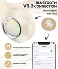 This kids headphones wireless Bluetooth will be a good partner for your kids, Bluetooth 5.3, LED Lights, HD Sound, Noise Cancelling and comfortable to wear, will make your kids love it. Foldable design is even more suitable for kids to go to school, traveling or out. Also, this headset is a perfect gift for birthdays, Christmas and school season. [ Bluetooth 5.3 ] Kids wireless headphones use Bluetooth 5.3 technology for a faster and more stable connection. [ LED Lights ] Controllable on/off breathing light design, Bluetooth headphones for kids make your child a personalized fashionista. [ Widely Compatible ] Kids Bluetooth 5.3 headset is widely compatible with iPhone iPad Smart phone tablet PC. Ergonomic and retractable design, suitable for Boys Girls ages 6-18 and even adults, not tired of wearing for a long time. [ Wireless & Wired ] Kids headphones with wired mode and Bluetooth wireless mode (the product is equipped with a 3.5mm audio cable). [ HD Sound & Noise Cancelling ] Featuring ENC physical noise cancellation technology and over-ear design with excellent composite diaphragm speakers, kids will experience better sound quality.