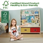 2-IN-1 LARGE STORAGE: Kids Bookshelf with Toy Storage Organizer is not only a kids 4-tier sling bookshelf rack, but also with 2 pcs, different color fabric drawer for toy storage organizer, got large capacity storage space. Kids, children and toddlers can storage books, toys, pens and anything they want, helps kids learn and practice organization and clean-up skills. NATURAL SOLID WOOD: Not like Melamine MDF as unpleasant smell, easily broke and bent, the broken residue will hurt children, this kids bookshelf is selected with high-quality natural solid pine wood which can completely eliminate these problems, it's durable and safe; paint-free design without any irritating and harmful odor. CHILD-FRIENDLY DETAILING: All solid wood material of this kids book shelf is hand-made and polished, careful polishing of edges and corners, sleek edges and rounded corners minimize the risk of bumping or scratching. The sling bookshelf adopts stronger and wear-resistant cotton linen canvas for durable and attractive.A great toy and book organizer for kids, boys, girls, toddlers and children. KIDS BOOKSHELF SIZE: 30.7x24.8x11inch/78*63*28cm. Perfect size kids book shelf rack allows children to get their favorite books easily. It is the ideal height toddler bookcase for kids room, classroom, living room and nursery. STABLE STRUCTURE & DURABLE: This kids toy storage shelf applied with thickened pine wood and solid wood pole, more stable structure. The kids bookshelf adopts stronger and wear-resistant cotton linen canvas material for durable and attractive. HEALTHY & ECO-FRIENDLY; EXPERLAM Kids Book Shlef was certified by FSC with certificate code: SGSHK-COC-311137, all wood materials are eco-friendly and healthy, this is a great solid wood kids bookshelf you can trust and buy with confidence!