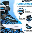 The Kids Inline Skates by Ecoo are designed for young beginners with a size-adjustable feature for a secure fit. These blue skates have light-up wheels, making them a fun gift for both boys and girls. The aluminum alloy bracket and PP shoe shell provide durability, while the leather and mesh upper ensure comfort. These roller skates are suitable for unisex kids weighing 5 bl, offering a safe and exciting outdoor sports option for young skaters. MAKES A GREAT GIFT!!! OPENED BOX!!! NEVER USED!!!