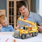 【High Quality for Safe Play】The large truck toy is made of high-quality plastic, non-toxic, BRA-free, durable, lightweight, scratch resistant, convenient to carry. After careful craftsmanship, every detail has been carved, and the rounded edges prevent children from scratching their little hands while playing. The truck toy has passed strict quality tests ensuring safety and reliability for worry-free fun. Suitable for kids aged 3 years and up. 【Multifunctional Mixer Toy Truck】This large children's truck toy is equipped with a cement mixing function. Children can rotate the mixer tank and unload items. Children can also prepare materials such as sand and pebbles themselves and play with the truck. The mixer truck construction toy has buttons that are easy for toddlers to operate. Boys can press the butto ns to play sounds and turn on the lights. Simulate the scene of carrying construction materials with sound and light effects. This kid's truck also has a push-and-go function, allowing children to easily push and drive it. 【Multifunctional Crane Toy Truck】This childre n's toy truck is equipped with an air pump function that can easily lift race cars. The load-bearing machine can rotate 360°. The mechanical arm can be extended, moved up and down, and rotated left and right, truly simulating vehicle rescue scenarios and bringing more fun to children. This crane toy set can effectively exercise children's hand-eye coordination and imagination. 【Value Crane Truck Toy Set】This crane truck toy set includes all the accessories children need to build a traffic rescue scene. In addition, the crane arm of this toy for boys is extendable and contracted, with a hand wheel to control the length of the lanyard, and the air is pumped and deflated to control the raising and lowering of the lifting arm. It is equipped with an operating crane and an independent hook that can lift different types of vehicles. 【Learning and Educational Toys】Crane trucks toy or Mixer toy truck for toddlers have a lot of interesting function. It can well exercise children's hand-eye coordination and imagination. I n addition, this kids truck has a push-and-go function, which kids to push and drive easily, which could exercise kids' motor skills well. Children can use with other truck styles to build their kingdom, stimulating their imagination and role-playing abilities. T his positive play way also improve parent-child interaction. 【Ideal Birthday/Christmas Gift for Toddlers】Children will be very happy to receive this toy truck gift. E xquisite gift box makes it an ideal gift for birthdays, parties, Christmas, Halloween, Thanksgiving, New Year, school prizes, Children's Day and any other special occasions. G iving this cool-looking crane truck as a gift to boys and girls will bring great joy. Get ready for endless adventures!