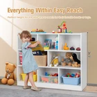Color: White Material: Engineered Wood, MDF Overall Dimension: 48" x 12.5" x 36.5"(L x W x H) Dimension of Large Cube: 23" x 12" x 10.5"(L x W x H) Dimension of Small Cube: 15" x 12" x 10.5"(L x W x H) Net Weight: 72.5 lbs Weight Capacity of Top: 132 lbs Weight Capacity of Each Cube: 44 lbs Package Includes: 1 x Bookcase 1 x User Guide Description: Offer an all-round storage solution for your kids’ toys and books with this 3-shelf storage cabinet. With 2 large and 3 small compartments, the 8-section storage organizer provides ample space for collecting books, toys, stationary, art supplies, and more. The premium wooden frame ensures durability and sturdiness. And rounded edges enable kids to use it safely. In addition, designed with a proper height of 36”, it allows children to reach for their favorite books or toys on their own. Place this cabinet in kid’s bedrooms, study, classroom, kindergartens, and cultivate kid’s good habit of organizing from an early age! Features: 8-cube storage cabinet for organizing kid’s books, toy, snacks, etc. Appropriate cabinet’s height keeps everything within easy reach Elevated base of 3” height prevents lower items from getting dirt Made of high-quality E0 grade engineered wood, it is very The white painted surface is smooth, waterproof and easy to clean Reinforced back buckles & bottom anti-slip pads for added stability Cabinet top holds up to 133 lbs, and each cube holds up to 44 lbs Ideal to be used as a kid's bookcase, toy organizer for study, school Specifications: Color: White Material: Engineered Wood, MDF Overall Dimension: 48" x 12.5" x 36.5"(L x W x H) Dimension of Large Cube: 23" x 12" x 10.5"(L x W x H) Dimension of Small Cube: 15" x 12" x 10.5"(L x W x H) Net Weight: 72.5 lbs Weight Capacity of Top: 132 lbs Weight Capacity of Each Cube: 44 lbs Package Includes: 1 x Bookcase 1 x User Guide