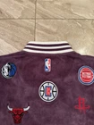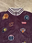 Kidsuper Studios NBA Jacket Size Large Embroidered Team Patches Measurements are in photos but also listed below. Please note that measurements may slightly vary depending on how the jacket is laid out. Measurements: Pit to pit: about 23 inches Length: about 26.5 inches Shoulders: about 19.5 inches Outer sleeve length: about 26 inches Please see all photos to judge condition. Jacket is in overall very good pre owned condition. Very cool velour purple color and high quality NBA team patches.