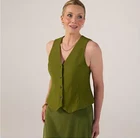 Kim & Co Deluxe Denim Knit Button Front Waistcoat size XS Olive V-neckline, a full front button closure, and princess seams to enhance your silhouette. The points at the front hem add an extra touch of flair, making it a versatile addition to any wardrobe. Whether you're dressing up for a casual outing or layering for a more polished look, this waistcoat promises to elevate your ensemble with ease. Neckline: V-neckline Sleeve length: Sleeveless Extra features: Full front button closure, princess seams, points at front hem Fabric content: 73% cotton, 23% polyester, 4% elastane Washing instructions: Machine wash in cold water with similar colours. Do not use chlorine. Do not tumble dry. Lay flat to dry. Low iron on reverse. Do not dry clean Garment measurements: Chest: XS: 86.4cm (34"), S: 91.4cm (36"), M: 96.5cm (38"), L: 101.6cm (40"), XL: 106.7cm (42"), 2XL: 114.3cm (45"), 3XL: 121.9cm (48") Length: XS: 50.8cm (20"), S: 51.4cm (20.3"), M: 52.1cm (20.5"), L: 52.7cm (20.8"), XL: 53.3cm (21"), 2XL: 54.6cm (21.5"), 3XL: 55.9cm (22") All measurements are approximate