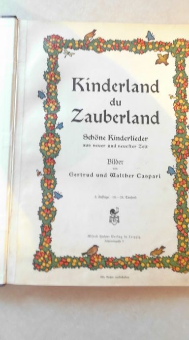 Kinderland du Zauberland Schöne Kinderlieder aus neuer und neuester Zeit - Bilder von Gertrud und Walther Caspari von Caspari: Autor(en) Caspari: Auflage 3. Auflage - 19. - 24. Tausend Verlag / Jahr Hahns Verlag Leipzig, ohne Jahr - wohl 20er Jahre. Format / Einband gebundene Ausgabe - 44 Seiten - mit sehr schönen farbfrischen Abbildungen Sprache Deutsch Gewicht ca. 505 g Bestell-Nr 94905 Bemerkungen --- Zustand: Einband etwas bestoßen - berieben und angestaubt, Vordeckel zwei kleinere Abriebstellen, innen Seiten teils fleckig / fingerfleckig, ansonsten bis auf kleinere altersbedingte Gebrauchsspuren gutes Exemplar --- Wir versenden nach Vorauszahlung, meistens am nächsten, spätestens am übernächsten Arbeitstag. Der Versand erfolgt über eine schnelle Versandart, Brief, Hermes oder DHL ---- Lagerfach: 757-101-A26-Bü Schlagworte Bilderbuch Kinderbilderbuch Märchen Unser Preis EUR 37,50 (inkl. MwSt.) Versandkostenfrei innerhalb Deutschlands Weitere Abbildungen Aufgenommen mit whBOOK Sicheres Bestellen - Order-Control geprüft! Artikel eingestellt mit dem w+h GmbH eBay-Service Daten und Bilder powered by Buchfreund (2026-01-09)