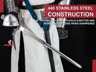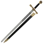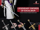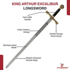 King Arthur Sword Golden https://www.ebay.com/itm/KING-ARTHUR-LEGEND-SWORD-EXCALIBUR-STAINLESS-STEEL-EDITION-NEW-GOLDEN-/404752020907 King Arthur Sword Gold-Anodized https://www.ebay.com/itm/King-Arthur-Excalibur-Longsword-Replica-Medieval-Knights-Sword-Gold-Anodized-/403201998118 King Arthur Sword Silver Black https://www.ebay.com/itm/King-Arthur-Excalibur-Longsword-Replica-Medieval-Knights-Sword-Silver-/194406500357 King Arthur Sword Silver https://www.ebay.com/itm/King-Arthur-Medieval-Knight-Arming-Sword-Scabbard-/186465455655 Immaculate Excalibur replica, inspired by the legendary sword of King Arthur, perfect for collectors and medieval enthusiasts. Crafted with fine attention to detail, featuring a 23-inch stainless steel blade with a Celtic pattern along the ricasso. Guard adorned with intricate vine and dragon designs, while the pommel showcases a central dragon motif and scrollwork with the 'Excalibur King Arthur' inscription. Leather-wrapped wood scabbard with an ornate design and an engraved image of young King Arthur pulling the sword from the stone. Scabbard also features a shield bearing a coat of arms with classic English symbols, including three lions and the Tower of London. Specifications: Overall Length: 29 Inches | Blade Length: 23 Inches | Blade Material: 440 Stainless Steel | Handle Length: 6 Inches | Handle Material: ABS Material | Includes: Leather-Wrapped Wood Scabbard | Mirror Polished Finish | Ornate Design. Behold the legendary Excalibur, the sword of King Arthur, brought to life in this stunning replica. Expertly crafted with meticulous attention to detail, this longsword is a must-have for collectors and medieval enthusiasts. The 23-inch stainless steel blade features an exquisite Celtic pattern along the ricasso, while the guard showcases intricate vine and dragon designs. The pommel bears a central dragon motif and scrollwork with the inscription 'Excalibur King Arthur.' This inscription also adorns the leather-wrapped wood scabbard, which depicts a young King Arthur pulling the sword from the stone amid mystic serpents and features ornate English symbols. Add a touch of legend to your collection with this Excalibur replica.