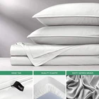 100% Viscose Derived from Bamboo ✔ GENUINE 100% ORGANICALLY GROWN VISCOSE DERIVED FROM BAMBOO - Crafted from the finest quality luxusiously soft 100% Organically Grown Viscose derived from Bamboo, and are OEKO-TEX Standard 100 Certified and tested to be free from over 100 harmful substances, ensuring that it is safe and healthy for your family. Our bed sheets are never blended with other fibers or fabrics unlike most competitors. ✔ COMPLETE 4-PIECE KING (76"x80") BED SHEET SET - Includes 1 fitted sheet, 1 flat sheet and 2 envelope-style pillowcases with overlapping closure. The pillowcases and flat sheet feature quality sewn double-stitched seams to ensure long-lasting durability and easy care with cold water washing, while offering a sensuous silky feel that grows luxuriously softer with every wash. ✔ ULTIMATE COOLING SOFTNESS AND BREATHABLE COMFORT - Viscose derived from bamboo fabric is naturally thermo-regulating to keep you cool and relaxed while sleeping and providing all season comfort. The moisture-wicking properties of our resort-grade bedding is perfect for hot sleepers or those with sensitive skin while indulging in the ultimate luxurious softness. ✔ DEEP FITTED POCKETS, 300 THREAD COUNT SATEEN WEAVE - Features fitted sheets that have a fully elasticized border to ensure a snug fit for any mattress up to 16 inches thick. All bedding is made from 300 thread count sateen weave fabric for a softer, smoother and more silky feel than even the highest thread count cotton sheets. 300 thread count is the optimal choice for pilling resistance as higher thread counts mean thinner and weaker fibers. ✔ 2 YEAR GUARANTEE - Every bedding purchase is backed by a risk-free 2 Year Guarantee against defects in materials and craftsmanship. Sleep soundly on these soft as silk sheets, knowing that our sheets are made from responsibly sourced materials. Designed in Florida and Imported from China. All fabric has been subjected to rigorous testing standard for flammability (Passed/ASTM F963-A6), heavy metals (Passed/ASTM E1479-16), and phthalates (none detected per CPSC CH C1001-09.3) Product description Soft & Cooling Soft and cooling to the touch while also being thermo-regulating to keep you cool and trap less body heat while you sleep. 300 thread count sateen weave fabric provides a sensuously silky feel that softens with every wash. Organically Grown All of our bed sheets are crafted from the highest quality 100% organic fabric available and are never blended with other fibers or fabrics. Sleep soundly on these soft as silk sheets, knowing that they are made from responsibly sourced materials. Ultimate Softness Our bed sheets are the perfect choice for those with sensitive skin. The moisture-wicking properties also promotes the dissipation of sweat resulting in a more relaxing and comfortable night of sleep. Durable Double Stitching Our flat sheet and pillowcases features double-stitched seams for enhanced durability to prevent fraying, enabling you to enjoy their softness for many years to come. The pillowcase interior stress points are reinforced with bartack stitching to enhance the strength. 16 inch Deep Pockets Our sheets feature a 16 inch deep pocket fitted sheet with high quality elastic to maintain a snug fit over most any mattress up to 16 inches thick. Envelope Closure Pillowcases All pillowcases feature an envelope closure to ensure that your pillow stays securely in place all night without coming out of the pillowcase while you sleep. All pillowcases feature quality double stitching around the outside perimeter. * OEKO-TEX STANDARD 100 Organic Certification performed in 2023 by TESTEX AG, Swiss Textile Testing Institute; Certificate ID BJ025 164353 * Fabric testing performed in 2022 by independent certified lab: Applied Technical Services located in Marietta, Georgia for (Passed/ASTM F963-A6), (Passed/ASTM E1479-16), (CPSC CH C1001-09.3)