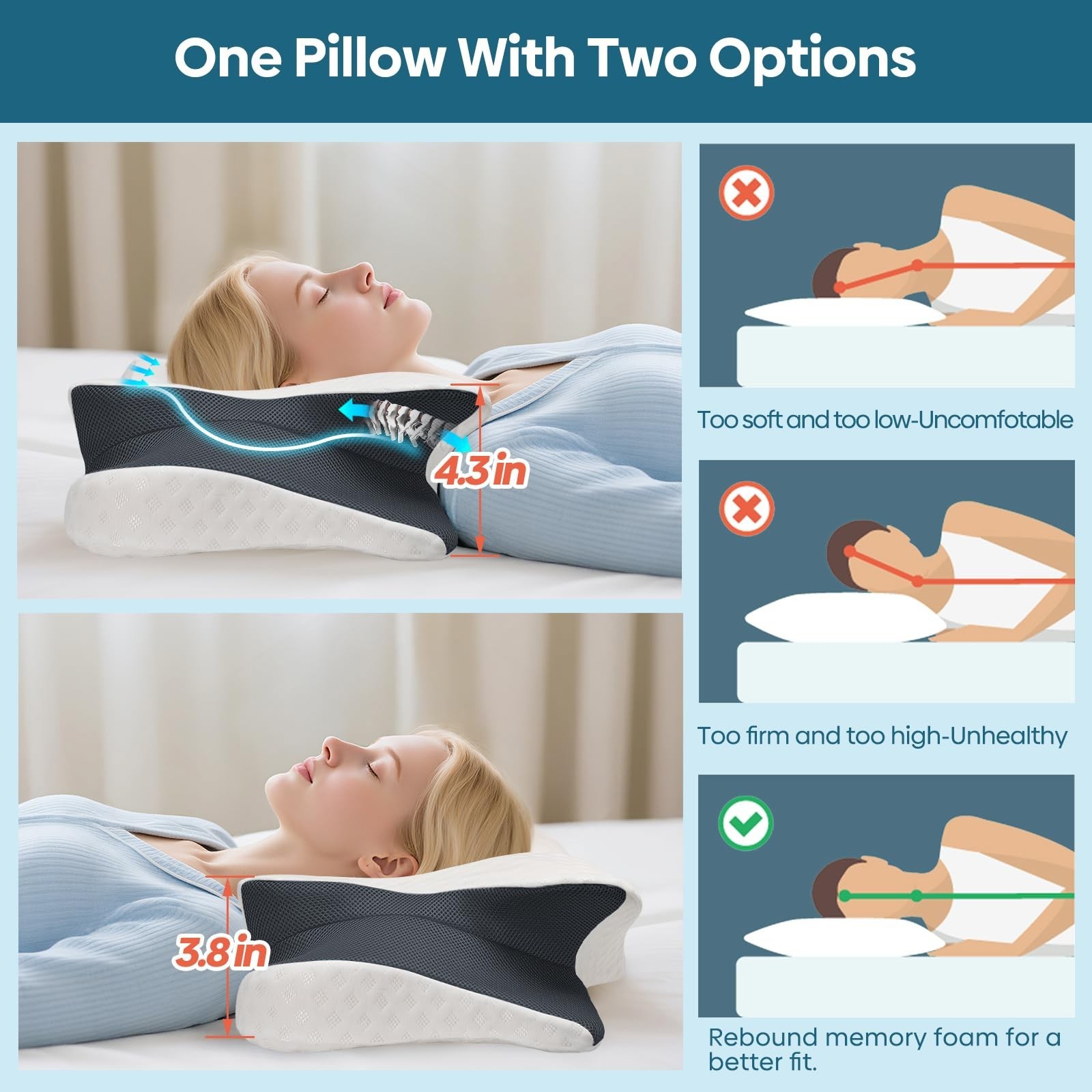 King Size Cervical Pillow for Neck,Shoulder Pain Relief Sleep,Memory Foam Pillow About this item CONTOURED PILLOW FOR NECK SUPPORT: It is supportive enough to adjust the direction of the pillow according to each person's different sleeping habits. Ensures alignment of the head, neck, and spine, relieves neck and shoulder pain and fights sleep disorders. TOP QUALITY AND ODORLESS: Memory foam is a new material with good elasticity, durability, and temperature control. This pillow is made of 100% memory foam, ensuring that the pillow is free of terrible chemical odors. The pillow has undergone rigorous testing and is certified by CertiPUR-US to ensure safety and quality. It is 100% safe for you and your loved ones. ERGONOMIC BUTTERFLY PILLOW: It provides maximum comfort in any sleeping position and is perfect for side, stomach, and back sleepers. Give it to a beloved friend or family member to help them get a more restful night's sleep! King SIZE PILLOW: This product comes in a compressed package. When you open the package, this pillow will become fluffy. The pillowcase is made of high-quality cotton fabric and zipper, hand washable or machine washable, easy to clean. QUALITY ASSURANCE: You can buy with confidence! We provide 100% after-sales service, if you have any questions, please contact us directly! Muzsoul will give you a satisfactory answer! Product Description Cervical Pillow for Neck Pain Relief Sleeping Contoured Pillow for Side, Back and Stomach Sleepers Ergonomic Memory Foam Butterfly Pillows 1. Regarding Snoring Issues: The product's effectiveness in preventing snoring may vary from person to person. If you frequently snore, consider consulting a doctor for other possible solutions, such as using an anti-snoring device or changing your sleep position. 2. Medical Consideration: Pillows cannot be used directly to treat cervical spondylosis. If you are considering their use for medical rehabilitation, we advise consulting a professional doctor. Make an informed decision based on your doctor's recommendation. 3. Memory Foam Odor: The memory foam may have a faint polyurethane smell. If you find this unacceptable, kindly ventilate the pillow for 5-7 days to allow any residual odors to dissipate. If the smell does not dissipate or is too strong, we are committed to your satisfaction and will promptly send you a replacement. 4. Adaptation Period: You may experience some discomfort within the first week. We recommend alternating between our pillow and a regular pillow every few days to allow your body to adjust. Our pillow features two heights, 3.8 inches, and 4.3 inches. Please choose the height that best aligns with your sleeping position and your body, which can enhance comfort and reduce the adaptation period. Please be patient and allow yourself time to adjust. 5. Maintenance Recommendations: After 2-3 months of use, we recommend placing the pillow in a cool, well-ventilated area for a few days. This helps restore the pillow's elasticity, eliminate any odors, and maintain a dry and fresh sleeping environment. Order Details Shipment Return Feedback About US Order Details · Provide valid and sufficient address. We are not responsible for undeliverable address. We will charge the shipping fee for returned items due to wrong address provided by buyer. · Provide CPF/CNPJ/EORI/RUT (Norway, Chile, Brazil, etc) Shipment · Item location in US : shipped within 1 day Item location in CN : shipped within 5 days (Sat. & Sun. & Public holiday excluded.) · All orders shipped with Tracking Number Our orders are shipped from China via Speedpak/Yunexpress/Yanwen/4PX/DHL/Fedex , and from the United States will be shipped out via USPS/UPS. If your order has not arrived within 20 business days, or if there is an issue with tracking, please do not hesitate to contact us. Return Please do contact us before opening any disputes and leaving feedback , If you are not completely satisfied with your purchase, we will do everything to resolve any issue. We can't help you if you didn't communicate first. Our warranty does not extended to any products that are physically damaged or that are not under normal operating conditions as a result of misuse or improper installation on the buyer/user's part. Feedback Your feedback is very important to us, please leave us a positive feedback with all 5-star for the Detailed Selling Rating when you received the item. Caption About US We welcome friends from all over the world to talk about the future cooperation, and we are experienced in drop shipping, welcome to contact us. Shape Rectangular Size 27.5"Lx 16.1"W x 5.5"H Fill Material Memory Foam Item Length 27.5 inch Function5: contour pillows,memory pillows,foam pillows Department Unisex Baby & Toddler, Kids, Teens, Adults Unit Type Unit Function: neck pillow,Neck pillow support Function2: neck pain pillows,contour pillows Care Instructions Easy Care Style Modern Features 3D, Ergonomic, Orthopedic Room Any Room Item Width 15.5inch Pattern Geometric Material Polyester Function3 ergonomic pillow, Ergonomic Neck Pillow Function4: memory foam pillow neck Function6: cervical pillow for neck pain Brand Muzsoul Type Foam Pillow Function1: Side Sleeper Neck Pillows Size: King Size Closure Type Zip Product Line Home Pillow