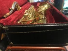 Great horn in very good condition with very light signs of wear. Hard to see but maybe a tiny ding here and there not substantial enough to plainly see in pix. Has no lacquer shine just the quality brass metal of the body. All the keys and pearls are in tacked and the horn looks great. If you need more info feel free to contact me and I will do my best to provide it. This sax is modestly priced and all reasonable serious offers will be considered. Thank you.
