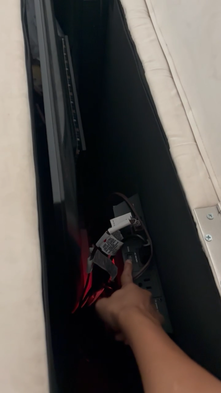 King size beige colored Bed w/LED, Fireplace & TV Stand with Bluetooth