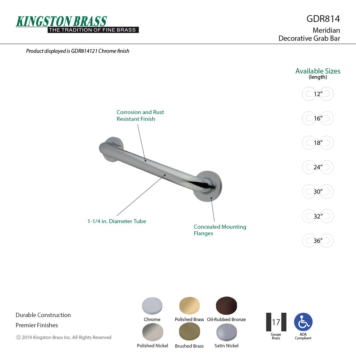 Powered by Frooition Top Products Kitchen Bathroom Lighting Fans Hardware Decor & Organization Kingston Brass GDR81412 Silver Sage 12" Grab Bar Overview Item Description Kingston Brass grab bars are beautifully designed to offer not only an aid in preventing falls, but unique style. Useful for all ages, these can be located in showers, near toilets, or in any customized location. This particular grab bar resourcefully provides support as it enhances a contemporary style. Kingston Brass GDR81412 Features: Covered under Kingston Brass's 1 year limited warranty Constructed of brass All hardware required for installation of grab bar is included Coordinates with products from the Silver Sage line seamlessly Complies with ADA standards Kingston Brass GDR81412 Specifications: Overall Width: 14-3/4" (from left to right of product) Center to Center: 14-3/4" (distance between installation centers) Projection (Depth): 2-7/8" (wall to edge of product) Why Choose BuildInc? OUR PROMISE TO YOU About Us At Build, we promise to provide the best selection we can, most competitive pricing, and unmatched customer service. Our store has quality home improvement products from trusted manufacturers like Moen, American Standard, Delta, Kraus, Kichler, Progress Lighting, Schlage, Kwikset, Baldwin, Broan, NuTone, Air King, and Rev-A-Shelf. With over 200,000 home improvement products for you to choose from, we have just what you need to get your project done. Fast & Free Shipping We promise to make it our priority to get you your items as fast as we can. We ship from 440 warehouses around the country, ensuring that your product will get to you as soon as possible. We know you're eager to get your hands on your new purchase, we would be too. As a bonus, most items ship for free. Returns We are happy to accept returns of unused or defective items for a refund within 30 days from the date of delivery. For returns outside 30 days, please contact our Customer Service team to go over our options. For full details, please view the Shipping and Payments tab above. To initiate a return simply go to the eBay Returns Portal and submit a return request. We ask that all items be returned with all original components via a traceable method. Once your return is received and processed, we will quickly get your refund or replacement issued. If for any reason you are unsatisfied with your purchase or for product or warranty questions, please contact Customer Service team for assistance. More Items! View more great items JONATHAN Y Lighting MOH211-8 Moroccan Hype 7-3/4' x 10' Border - MultiColor $160.71 Shaw 5680V Obelisk Glue DN 12" x 24" Embossed Vinyl Flooring - Light Gray $110.86 JONATHAN Y Lighting SEU100-214 Supersoft 2' x 14' Polypropylene - Emerald $78.84 James Martin Vanities WS-1 Wood Vanity Finish Sample - Seaside Oak Cane $25.00 About Us | Shipping | Returns | Contact Us | FAQ | Collections | Special Offers! Powered by Frooition Frooition Frooition | No-js Template | eBay design, eBay store design, eBay shop design, eBay template design, eBay listing design (ver:froo_no_js) This listing is currently undergoing maintenance, we apologize for any inconvenience caused.