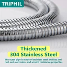 TRIPHIL Kink-free Shower Hoses 71" Extra-long for Handheld Showerhead Hose Replacement, Flexible Metal Shower Tube Extension, Stainless Steel Sleeve Chrome 71 Inches Product Details Size: 71 Inches Color: Chrome Brand: TRIPHIL MPN: WXJPC180 UPC: 631105026499 EAN: 0631105026499 Brand: TRIPHIL Material: Stainless Steel Color: Chrome Product Dimensions: 71"L x 1"W Inside Diameter: 0.5 Inches Nominal Wall Thickness: 0.05 inches Item Length: 71 Inches UPC Manufacturer: TRIPHIL Brand: TRIPHIL Material: Stainless Steel Color: Chrome Product Dimensions: 71"L x 1"W Inside Diameter: 0.5 Inches Nominal Wall Thickness: 0.05 inches Item Length: 71 Inches UPC: 631105026499 Manufacturer: TRIPHIL Part Number: WXJPC180 Item Weight: 10.5 ounces Country of Origin: China Item model number: WXJPC180 Is Discontinued By Manufacturer: No Size: 71 Inches Style: Modern Finish: Polished Pattern: Kink-free Shape: Curved Installation Method: Wall Mounted Hose Length: 71 Inches Batteries Included?: No Batteries Required?: No Date First Available: April 30, 2017 360 Degree Rotatable Design: This shower head hose is designed with a swivel brass nut, keeping your shower head hose kink-free, you will no more be annoyed by your old twisting shower hose, and comes with two shower caps Quality and Great Longevity: The external tube is all stainless steel constructed, with two solid brass constructed connectors/nuts, ensuring non-rusty and longevity High Water Pressure Resistance:Our shower hoses internal pipes are all made from premium material EPDM, which is non-toxic & odorless, heat-resistant and cold resistant, high water pressure resistance Fits your home's shower system:The conical & hex connectors are 1/2" US Standard thresds size, fitting for more than 99.9 % US family shower water supply and handheld showerhead connections Sturdy and Good Looking: 1.8 meters (71 inches) extra long, with multi-layer chrome finished, creating a bright, highly reflective, cool look, built to resist daily corrosion, scratches & tarnishing