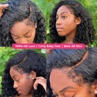 4C Hairline Kinky Edge Wig 180 Density 10-34 Kinky Curly Lace Frontal Wig with Curly Baby Hair 4x4 Lace Closure Wig Glueless Wig 100% Unprocessed Remy Human Hair Wig Cut Off From The Young Girls Donor Direct No Shedding No Tangling Soft Healthy Silky Full Natural Hairline With Curly Baby Hair