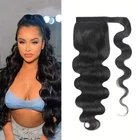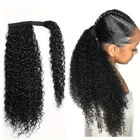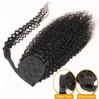 Kinky Curly Human Hair Extensions Wrap Around Body Wave Ponytail With Clip Remy