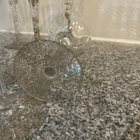 The Kirklands CharIsma 8 Water Goblet set includes four crystal water goblets with gold flecks on the stem, standing at 8.5 inches tall and featuring an optic shape. The clear gold color and glitter style add a touch of elegance to any dining table. This set is perfect for serving water to a group of 8 guests in style, making it a great addition to any home bar or kitchen collection.