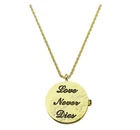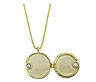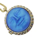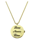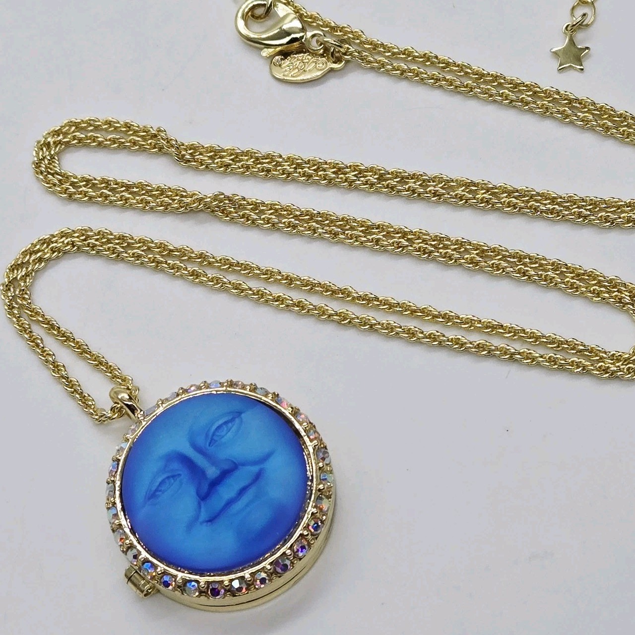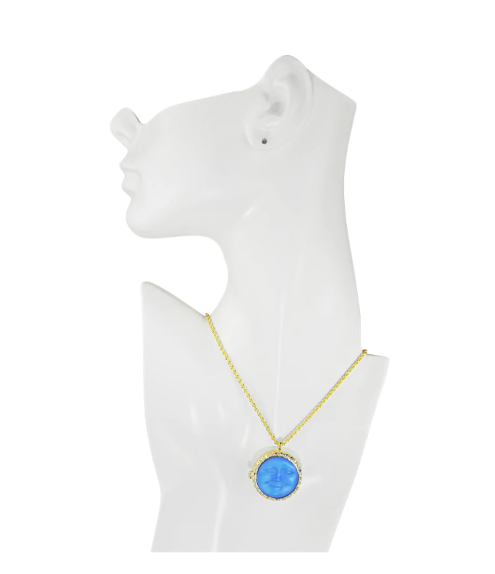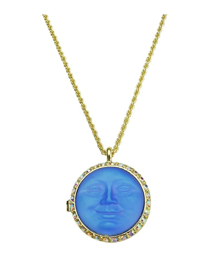 The Kirks Folly Love Never Dies Glass Seaview Moon Locket Necklace is a lovely locket with a magnetic closure, is hand painted on the inside and the back of the heart is engraved with the words "Love Never Dies". The locket is suspended from a rope patterned chain and it can hold a picture or a keepsake from times gone by. In the center of the locket is the beautiful and glowing 25mm glass Seaview Moon stone. Plated Gold tone/25mm Glass Sapphire AB Moon. Measures approximately 30" long with a 2" extender chain. Locket Measures approximately 1 1/8" wide.