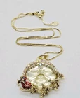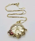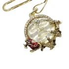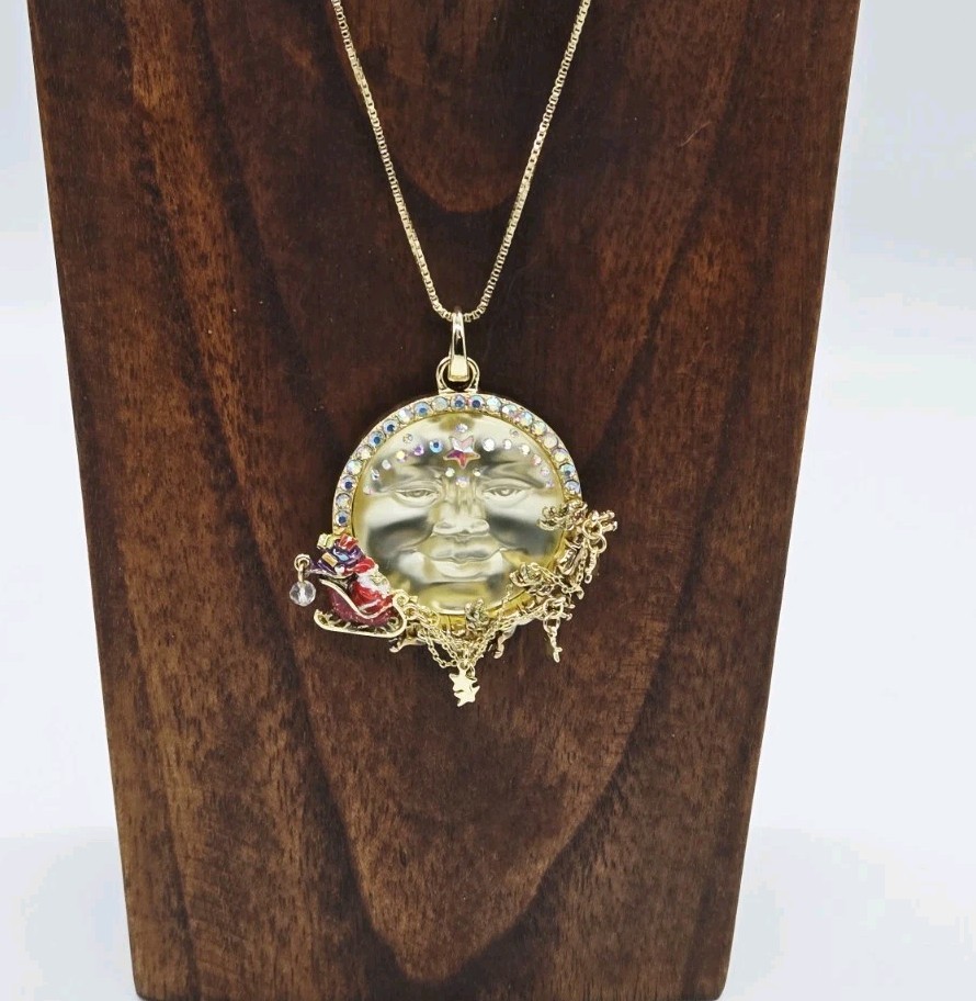NECKLACE A remarkably versatile and slinky box chain necklace magically adjusts from 20" to as short as you need it by sliding the small bead up and down on the chain. The necklace opens with a lobster claw so you can slide on your favorite pendant or collection of treasured charms. Design a new necklace whenever you feel creative! Plated Gold tone Adjustable to 20" long. OPEN RING CHARM This open ring charm features Santa's red glittered sleigh soaring beneath a luminous Seaview Moon, his sack overflowing with delicately enameled presents as his reindeer fly him through the night sky. The Seaview Moonstone shines with a crown of aurora borealis crystals, guiding Santa's sleigh safely through the starlit night. Plated Gold tone. Measures approximately 1 3/4" wide x 2 1/2" long.