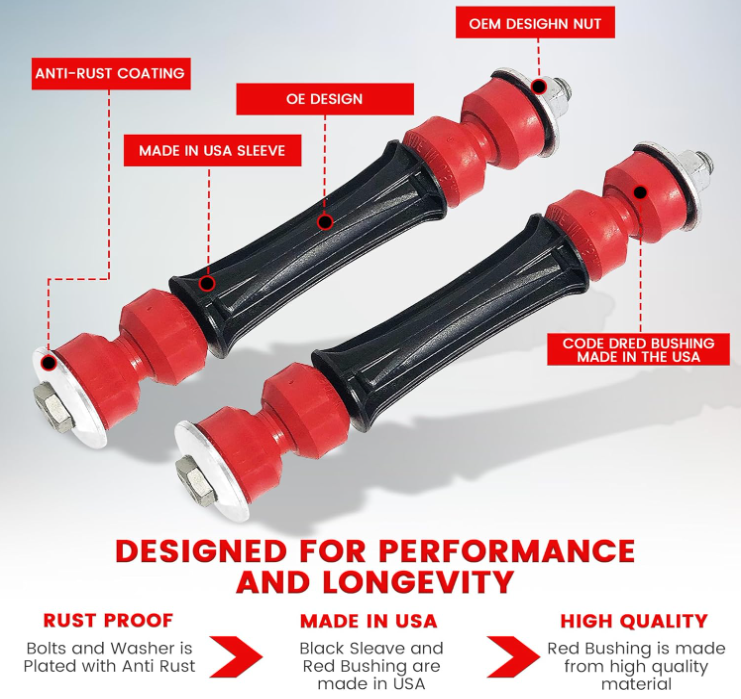 Kit 6PC enlaces estabilizadores + bujes CODE RED, 36 mm, SUV 2007–2020, Nuevo Compatible con Escalade, ESV - 2007 2008 2009 2010 2011 2012 2013 2014 2015 2016 2017 2018 2019 2020 Compatible con Escalade EXT, Avalanche - 2007 2008 2009 2010 2011 2012 2013 Compatible con Suburban - 2015 2016 2017 2018 2019 2020 Compatible con Suburban 1500 - 2007 2008 2009 2010 2011 2012 2013 2014 Presentamos nuestro kit de bieletas de barra estabilizadora delantera/trasera + kit de bujes delanteros CODE RED EXTREME de alta calidad, diseñado Para un rendimiento y durabilidad superiores, capaces de soportar temperaturas extremas (de -27 °C a +140 °C). Además, están fabricados con materiales resistentes a productos químicos y grasas que mantienen su flexibilidad en una amplia gama de entornos hostiles. Fabricado con materiales de primera calidad y diseñado por expertos para cumplir con los más altos estándares de la industria, este kit es imprescindible para cualquier conductor que valore la seguridad, la fiabilidad y la comodidad en la carretera. Además, nuestro kit de bieletas de barra estabilizadora está reforzado con una funda de plástico diseñada por el fabricante original y herrajes chapados en Dacromet para aumentar la resistencia a la corrosión. La tuerca hexagonal de una pieza con arandela integrada y el fijador de roscas preaplicado en el perno garantizan una instalación segura y sencilla. Contenido: K700538 x2 - Kit de bieletas de barra estabilizadora delantera / ?? Manga y bujes diseñados y fabricados en EE. UU. ??K200222 x2 - Kit de bujes de barra estabilizadora delantera / ?? Bujes diseñados y fabricados en EE. UU. ??K6700 x2 - Kit de bieletas de barra estabilizadora trasera / ?? Bujes diseñados y fabricados en EE. UU. ENVÍO: ¡Ofrecemos envío GRATIS en todos los pedidos! Enviamos dentro de los tres días hábiles posteriores al pago, generalmente antes. Utilizamos una selección de servicios de envío como UPS, FedEx, USPS, etc. Solo enviamos a los 48 estados inferiores, no se permiten direcciones APO/FPO ni apartados postales. En este momento, no se ofrecen recogidas locales ni opciones de envío combinado. PAGO: Aceptamos pagos mediante cualquiera de los siguientes métodos: PayPal ¡Pague lo antes posible después de ganar una subasta, ya que eso nos permitirá enviarle su artículo antes! COMENTARIOS: La satisfacción del cliente es muy importante para nosotros. Si tiene algún problema con su pedido, comuníquese con nosotros y haremos todo lo posible para que quede satisfecho. ¡Gracias por comprar con nosotros!