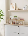 Highlights of These Spice Racks at a Glance: - Flexible Arrangement: Stack, nest, separate, or arrange in an L-shape to fit your space. - Ample Storage: Keep spices, containers, and utensils organized. - Sturdy Build: Made of premium bamboo and steel, supporting up to 22 lb on the small rack and 24 lb on the large one. - Easy Assembly: Simply attach the frames to the panels. - Versatile Use: Ideal for organizing spices in the kitchen, cosmetics in the dressing room, or office supplies in the study. Specifications: - Color: Light Bamboo - Material: Steel, Bamboo - Small Shelf Size: 6.7"D x 12.3"W x 5.5"H (17 x 31.2 x 14 cm) - Large Shelf Size: 7.9"D x 12.7"W x 6.3"H (20 x 32.3 x 16 cm) - Total Weight: 2.2 lb (1 kg) - Max. Static Load Capacity of the Small Shelf: 22 lb (10 kg) - Max. Static Load Capacity of the Large Shelf: 24 lb (11 kg) Package Contents: - 2 x Cabinet Shelf - 1 x Accessory Kit - 1 x Instructions 【AMPLE STORAGE】With this set of 2 kitchen counter shelves, keep your cooking essentials like spice jars, containers, cans, utensils, and recipes organized and easily accessible, making meal prep more convenient and efficient 【FLEXIBLE USE】This set of 2 spice racks includes a small rack (6.7"D x 12.3"W x 5.5"H) and a large rack (7.9"D x 12.7"W x 6.3"H). They can be stacked, nested, used separately, or arranged in an L-shape to fit your space perfectly 【STURDY CONSTRUCTION】Crafted from premium bamboo and steel, these cabinet organizers are built to last. The small rack holds up to 22 lb, while the large rack holds up to 24 lb, providing reliable support for your kitchen essentials 【EASY TO ASSEMBLE】Assembling these shelf organizers is a breeze. Simply follow the clear instructions to attach the frames to the panels, and you'll have them ready to use in no time 【VERSATILE】Use these kitchen cabinet organizers to organize spice jars in the kitchen, cosmetics in the dressing room, or office supplies in the study, perfect for different spaces and needs