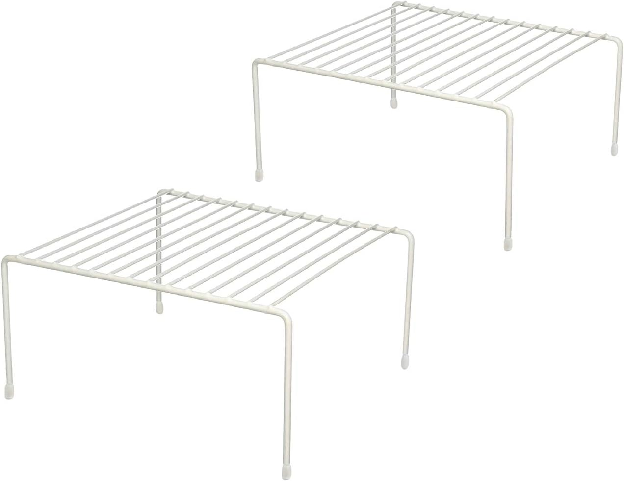 Space-Saving Design: Maximizes storage capacity in small areas Durable Construction: Powder-coated steel wire shelves ensure longevity Easy to Clean: Simple design allows for quick and easy cleaning Protective Feet: Plastic feet prevent damage to underlying surfaces Versatile Use: Suitable for kitchen, bathroom, closet, or pantry organization This smart design set of 2 helper shelves will increase the storage capacity in your cabinets, pantry, bathroom, freezer, or closet! Single steel-wire shelves (powder-coated) are durable and create two rows of space for maximum organization and space efficiency. They clean easily and have plastic feet that protect the surface underneath. Fits most spaces. No Installation or hardware required and lightweight design allows for easily maneuverability. Great for organization and decluttering small spaces. Dimensions: 10”L, 6”H, 7”D