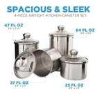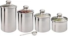 Kitchen Canister Set - Airtight Stainless Steel Canisters with Glass Lids - Organization Containers for Kitchen - Ideal for Dry Food, Flour, Sugar, Coffee, Rice, Tea & Pantry Storage (4 PCS Small) Visibility & Freshness: This kitchen container set features clear, see thru glass lids for quick identification, with airtight seals to keep coffee, tea, flour, and sugar at peak freshness Durable Stainless Steel Construction: Ideal for any kitchen, these canisters are resistant to stains and odors while being a stylish, modern solution for food storage Space Efficient Kitchen Organization: Stackable and modular, these stainless steel canisters help organize your pantry, maximizing countertop and cabinet space, perfect for storing pasta, cereal, and other dry goods Comprehensive Storage Set: Includes 125oz, 90oz, 58oz, and 32oz canisters, making it versatile for storing everything from baking ingredients to snacks, this set is a practical organizer for any pantry Kitchen Canister Set from SilverOnyx: kitchen container set 3 4 air airtight and canister cereal clear cocina comida containers counter de flour food for glass large lid lids of organizar organizers organizing pantry para pasta bpa countertop each home house includes jars organizador organizadores recipientes stackable white small snack SilverOnyx 4-Piece Premium Stainless Steel Canister Set features removeable glass lids with handles, and silicone gaskets for a tight seal that helps preserve stored food items. The satin-finished premium stainless steel canister set beautifully complements any kitchen and is perfect for storing cookies, coffee, sugar, tea, rice, pasta, spices, and other kitchen staples. The canisters easily wipe clean with a damp cloth, and hand-washing is recommended to protect the finish. SilverOnyx Kitchen Canisters have tempered glass lids with silicone gaskets that help keep food fresh, and the clear glass lid allows for easy viewing - an excellent addition to your kitchen and perfect canisters for flour and sugar. Each exclusive bundle is a canister set of 4 varying sizes with a bonus measuring scoop. The canister sets for kitchen or pantry include the following sizes: 0.75L (25 fl oz), 1.1L (37 fl oz), 1.4L (47 fl oz), 1.9L (64 fl oz), plus bonus 20ml coffee/tea measuring scoop. DIMENSIONS (not including lids): 1) 0.75L (25 fl oz): Ø 4.8" x H 2.9" 2) 1.1L (37 fl oz): Ø 4.8" x H 4.1" 3) 1.4L (47 fl oz): Ø 4.8" x H 5.25" 4) 1.9L (64 fl oz): Ø 4.8" x H 6.8" 5) Measuring Scoop: 20ml MATERIALS: Canister - food-grade stainless steel Lid - tempered glass Seal - silicone rubber These canister sets for the kitchen would make a wonderful gift for new couples or homeowners and are great for storing tea, coffee, sugar, cookies, rice, pasta, jam, and your favorite snacks. Each set comes in an attractive box that not only makes it great for gifting, but also provides additional protection during shipping and handling. SHIPPING - We offer FREE shipping on all orders! - We ship within 3 business days of payment, usually sooner - We use a selection of shipping services such as UPS, FedEx, USPS etc - We only ship to the lower 48 states, no APO/FPO addresses or PO Boxes allowed International buyers – please note: Import duties, taxes, and charges aren't included in the item price or postage cost. These charges are the buyer's responsibility. - Please check with your country's customs office to determine what these additional costs will be prior to bidding or buying. - We have confidence in our products, but if you are not fully satisfied please contact us within 30 days of purchase and you will get full refund. * Order Cancellation Policy ** You can return a product for up to 30 days from the date you purchased it. 1. The seller reserves the right to cancel the special case only due to eBay cancellation fee. 2. The decision of seller is the final. 3. The seller will respond to the cancellation request within 2 business days. Please wait for the result of cancellation. 4. In case the cancellation is not completed by some reasons, the buyer can follow the options below to get the refund. 4.1 The buyer can reject the item when it arrives. 4.2 The buyer can send the item back to the seller within 30 days If the buyer receives item (USA Shipment ONLY). The seller will provide the FREE return label to the buyer when the buyer opens " Return Item" case on eBay by using the reason as "Change my mind" ONLY. 5. When buyer has placed the order. The order will be processed and completed by automatic warehouse system within 5 minutes. In case that buyer sends the cancellation request after 5 minutes of placing the order, the request will be rejected. **Sending direct message to cancel the order is not allowed for every case.* Return Policy For the return case - If buyer would like to return the items for refund or replacement, please CONTACT SELLER to receive the free return label from seller. The refund or replacement will be processed with the tracking number of return label which is provided by seller only. The other ways of return which are not approved by seller will not be processed for the refund or replacement. CUSTOMER SERVICE - We try our best to make sure every customer is completely satisfied. - If there's a problem, feel free to message us! - We're happy to help.