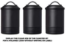 Steelware Central Kitchen Canister Set of 3 Sugar Coffee Tea with lids Food Storage, Black COMPLETE 3-PC Set Sugar, Coffee, Tea canister storage set with lids. Airtight lids keep the contents fresh while keeping your countertop neat and organized. MATTE BLACK- Stylish durable kitchen canister set are modern, sturdy and fit perfectly under the cabinets to store your flour, sugar, coffee, tea bags, snacks and other dry goods. PREMIUM QUALITY and brilliantly designed metal containers with airtight seal will optimize your kitchen shelf space, bar and storage with a modern farmhouse décor look. PERFECT GIFT - Our round steel canisters for kitchen counter, come in a gift ready box for special occasions! Give the gift that sparks joy! CANISTER DIMENSIONS – 4in wide X 7.2 in tall. The vintage country décor food storage set is made of high quality powder coated galvanized steel. Food safe and easy to clean by hand. Please dry thoroughly immediately after. SHIPPING - We offer FREE shipping on all orders! - We ship within 3 business days of payment, usually sooner - We use a selection of shipping services such as UPS, FedEx, USPS etc - We only ship to the lower 48 states, no APO/FPO addresses or PO Boxes allowed International buyers – please note: Import duties, taxes, and charges aren't included in the item price or postage cost. These charges are the buyer's responsibility. - Please check with your country's customs office to determine what these additional costs will be prior to bidding or buying. - We have confidence in our products, but if you are not fully satisfied please contact us within 30 days of purchase and you will get full refund. * Order Cancellation Policy ** You can return a product for up to 30 days from the date you purchased it. 1. The seller reserves the right to cancel the special case only due to eBay cancellation fee. 2. The decision of seller is the final. 3. The seller will respond to the cancellation request within 2 business days. Please wait for the result of cancellation. 4. In case the cancellation is not completed by some reasons, the buyer can follow the options below to get the refund. 4.1 The buyer can reject the item when it arrives. 4.2 The buyer can send the item back to the seller within 30 days If the buyer receives item (USA Shipment ONLY). The seller will provide the FREE return label to the buyer when the buyer opens " Return Item" case on eBay by using the reason as "Change my mind" ONLY. 5. When buyer has placed the order. The order will be processed and completed by automatic warehouse system within 5 minutes. In case that buyer sends the cancellation request after 5 minutes of placing the order, the request will be rejected. **Sending direct message to cancel the order is not allowed for every case.* Return Policy For the return case - If buyer would like to return the items for refund or replacement, please CONTACT SELLER to receive the free return label from seller. The refund or replacement will be processed with the tracking number of return label which is provided by seller only. The other ways of return which are not approved by seller will not be processed for the refund or replacement. CUSTOMER SERVICE - We try our best to make sure every customer is completely satisfied. - If there's a problem, feel free to message us! - We're happy to help.