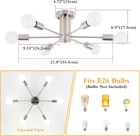Store New Arrivals Add to Favorite View Feedback Contact Kitchen Lighting Fixtures Ceiling, 6 Lights Nickel Mid-Century Sputnik Chandelier Hanging Light Fixtures, Modern Semi Flush Mount Ceiling Light for Dinning Room Bedroom Hallway Foyer Description Item model number D0048S-6-SN Light Source Type Halogen, LED, Fluorescent, Incandescent Style Contemporary/Modern/Antique Number of Items 1 Power Source Incandescent/CFL/LED/Halogen Fixture Type Non Removable Number of Light Sources 6 Control Method Touch Batteries Included? No Maximum Compatible Wattage 360 Watts Specification Met UL Controller Type Push Button Unit Count 1.0 Count Room Type Lobby, Kitchen, Bedroom, Living Room, Hallway, Dining Room Assembly Required No Product Dimensions 21.8"L x 21.8"W x 6.9"H Material Metal Installation Type Flush Mount Model Name D0048S-6-SN Finish Type Brushed Included Components Mounting Hardware Bulb Features Dimmable Indoor/Outdoor Usage Indoor Bulb Base E26 Country of Origin China Batteries Required? No Item Weight 3 pounds Light fixture form Ceiling Special Features Dimmable Special Feature Dimmable Part Number D0048S-6-SN Shade Color silver Mounting Type Semi Flush Mount Color Silver Wattage 60 KW Voltage 110 Volts Plug Format A- US style Shade Material Metal Finish types Brushed 【Dimensions】- This brushed nickel ceiling light fixture the size of the ceiling is 4.72in(12cm), height is 6.9in(17.5cm) , diameter is 21.81in(55.4cm). The length of the lamp arm is 9.53in(24.2cm). 【Easy to Install】- This modern ceiling light contains all mounting hardware for quick and easy installation. The included quick connector makes wiring very easy. 【Dimmable】- This bedroom light fixtures ceiling can be dimmable when you used with a dimmable bulb and compatible dimmer switch(Dimmer Switch Not Included). 【Bulb Requirement】- E26 US Standard Socket. Max 60W for each bulbs. 6×E26 bulb base, Compatible with LED, CFL, halogen or incandescent bulbs 60 watts or less(Bulbs Not Included). 【Preminum & After Sale Service】-This 6 lights sputnik chandelier with premium metal in brushed nickel finish.If you got any question or problem, we offer 2 year warranty for our silver flush mount ceiling light,please feel free to . Product Description WTYUIO 6 Lights Semi Flush Mount Ceiling Light Nickel Sputnik Chandelier Mid-Century Ceiling Lamp for Living Room Kitchen Hallway Bedroom Foyer Elegant and Romantic Style Dimensions - This semi flush mount ceiling light the size of the ceiling is 4.72in(12cm), height is 6.9in(17.5cm) , diameter is 21.81in(55.4cm). The length of the lamp arm is 9.53in(24.2cm). Easy to Install - This modern sputnik chandelier contains all mounting hardware for quick and easy installation. The included quick connector makes wiring very easy. Dimmable - This chandeliers for dining room can be dimmable when you used with a dimmable bulb and compatible dimmer switch(Dimmer Switch Not Included). Bulb Requirement - E26 US Standard Socket. Max 60W for each bulbs. Work with LED, incandescent, CFL and halogen bulb types(Not included bulbs). 6×E26 bulb base, Compatible with LED, CFL, halogen or incandescent bulbs 60 watts or less(Bulbs Not Included). WTYUIO Sputnik Chandeliers Easy to Install This semi-flush mount ceiling light contains all mounting hardware for quick and easy installation. The included quick connector makes wiring very easy. Dimensions Canopy: 4.72''(12cm) Fixture Height: 6.9''(17.5cm) Fixture Width: 21.8''(55.5cm) Rob Length: 9.53''(24.2cm) Dimmable This mid-century sputnik chandelier can be dimmable when you used a dimmable bulb and compatible dimmer switch(Dimmer Switch Not Included). Warm Tips 1. Please contact a licensed electrician to help you if you don't know how to install it. 2. Please don’t connect electricity until your fixture is fully assembled. 3. Make sure all the small accessories are keep away from children when installation. 4. For a longer service life, please use it in a dry environment. Home Decor for Different Scence Other Color Suggest ABOUT US We offer the best prices around on high quality products. Our E-store includes media such as books, movies, music and games while offering electronics, toys, sporting apparel, clothing, tools, general home, garden items and more. SHIPPING We are always working hard to ensure your package arrives as soon as possible. Please understand that some factors like weather, high postal traffic, and the performance of shipping companies are outside of our control. We offer free shipping to the lower 48 states and ship within 2 business days of payment, usually sooner. We do not accept P.O. Boxes. Please provide a physical address. For shipping outside of the continental USA, we only use eBay's Global Shipping Program.The item is shipped to KY and then sent to the rest of the world. International customers are responsible for all duties and taxes. Continue to check out in order to calculate costs for shipping the item to your country. Messages regarding eBay's Global Shipping Program MUST be directed at eBay EXCLUSIVELY. RETURNS We offer a 30-Day Return Policy on items which you are not completely satisfied with. You have the option for a full-refund or an exchange of the item. No returns are available on items shipped outside of the USA. PAYMENT We accept PayPal. CONTACT US This page content is yet to come Please ad us to your favorite seller and visit again later Thank You CUSTOMER SATISFACTION We try our very best to make sure every customer is completely satisfied. If there's a problem, message us! We're happy to help. WE ACCEPT Copyright © 2021 AutoDS. | All Rights Reserved