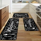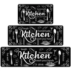 Kitchen Mats for Floor, Non Slip Washable Kitchen Rugs Sets of 3, Black Farmhouse Cushioned Stain Resistant Kitchen Runner Rug for Kitchen Floor, Laundry Room, Bathroom, Entryway Carpet Decor 【Water Absorption and Quick Drying】Kitchen mats for floor are made of a Nappa leather surface, a middle layer of high-density memory foam, and a high-anti-slip rubber sole bottom layer. Kitchen rugs have strong water absorption and no water accumulation. They can quickly absorb water and are quick drying. Keep the floor clean and dry to keep your home comfortable and clean 【Easy Cleaning and Stain Resistant】The surface of the kitchen mats is made of a leather-like material, which does not easily accumulate dirt and does not stick to hair. Whether it’s water, wine, sauce, or other spills, you can easily wipe the mat clean with a damp cloth or rag, making it very easy to clean. In addition, the printed text on these kitchen floor mats will remain bright over time, ensuring that your kitchen mat has long-lasting quality 【Anti-Skid Backing】Unlike those kitchen rugs with plastic dots backing, we use quality rubber backing, which provides great friction no matter whether the floor is wet or dry, wood or marble. You don't need to worry about the slide issue when standing on it 【Anti-Fatigue Runner Rug & Durable】This kitchen floor mat runner's surface is very soft and smooth, making you feel comfortable underfoot, and the rubber foam has a nice cushion that provides a comfortable, supportive stand that eases foot fatigue. Not only is it comfortable and durable, but it also stands up to frequent use without losing its charm, ensuring long-lasting performance even in high-traffic areas 【Versatile Farmhouse Runner Rug】Kitchen rugs for floor measuring 17"*30"+17"*47"+17"*59", lightweight thickness of 0.14". This kitchen rugs and mats combines farmhouse and modern styles, and the printed patterns on the rug are beautiful and elegant, offering both functional and decorative for your kitchen, Additionally, you can use it as a bathroom mat at home and hotel, a rug for bedrooms and hallways, a welcome mat at the front door, and more 【Customer Guarantee】Your complete satisfaction is our number one priority. If you have any questions or are not satisfied, please contact us first. In shipping, the kitchen mat is rolled; you only need to open it after receiving it, and it will be ready for use without any creases