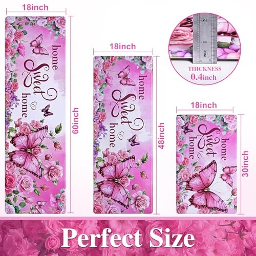 30 Days Return Policy Fast Delivery Trusted seller Kitchen Rugs Floral Kitchen Mats for Floor Butterfly Farmhouse Anti Fatigue Mats for Kitchen Floor, Non Slip Washable Kitchen Mat for Home, Sink, 18'' x 30'', Pink Product Description Vibrant Floral Butterfly Design: Kitchen rug features a beautiful and vibrant floral and butterfly pattern. Available in a variety of elegant designs and colors, gives your home a beautiful look, a nice addition to your kitchen and laundry room! Comfortable Floor Mats: Kitchen mats for floor crafted with 0.4-inch memory foam, these mats provides a comfortable standing experience, reducing fatigue even after prolonged periods. Safety First-Non Slip: Crafted with a high-quality PVC surface and non-slip backing, these mats effectively prevent slipping and scratching on floors, providing a secure footing and peace of mind for you, your family, and guests. Versatile Sizing: The kitchen floor mat set includes three mats measuring 18" x 30", 18" x 48", and 18" x 60", providing a perfect combination to meet your various home decor needs. Easy Maintenance: Keeping your mat clean and fresh has never been easier. The floral kitchen mat PVC material makes these mats stain-resistant, waterproof, and simple to clean with a damp cloth or handheld vacuum. Shipping Returns Payment Shipping Shipping is FREE to all addresses other than APO/PO boxes in the lower 48 states. All our stock ships from US-based warehouses. Shipped via USPS or UPS (depending on location and package weight) Unless stated otherwise, all orders will ship within 24-72 hours of your payment being processed. Check our feedback to see the great reviews of FAST shipping we offer. Returns As our valued customer, we will do our best to make sure the product you receive arrives to you on time and as expected. If you are not satisfied with your purchase, please contact us within 30 days of receiving your order to process a return. Payment We currently accept payment via eBay managed payments only. Once payment is cleared, we will dispatch your shipment within 1-3 business days. Please refer to the "Shipping" tab for more information regarding shipping speed to your destination.