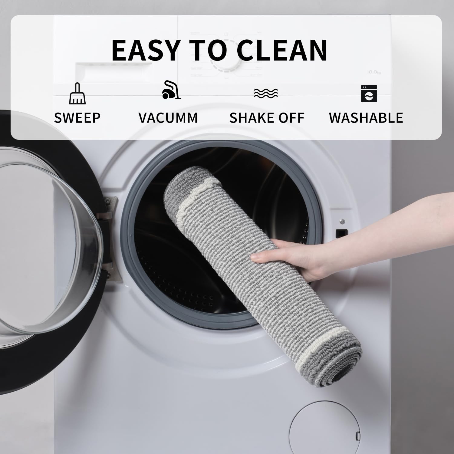 Kitchen-Mats for Floor 100% Polypropylene Kitchen Rugs Non Slip Washable, Durable Dirt Resist Half Circle Rug TPR Backed Kitchen Floor Mat, 18"x28", Beige SLIP RESISTANCE: Beige kitchen rugs with a non-slip TPR backing helps create a safer environment by reducing the risk of slips and falls, kitchen floors can become slippery, especially when wet, kitchen mats for floor provides additional traction and stability, ensuring your steps are secure FLOOR PROTECTION: A kitchen mats can provide an extra layer of protection for your flooring, the mat helps prevent scratches, stains, and wear caused by high traffic, dropped utensils, or spills, if you have hardwood or tile floors that are susceptible to damage, our kitchen rug will be a great choice for you DURABILITY: Our half circle kitchen rugs are made of 100% polypropylene, which is known for it its excellent durability, the mat is resistant to stains, fading, and wear, as well as withstand frequent cleaning EASY TO CLEAN: Machine washable kitchen carpets are easy to keep clean, as long as you shake off the dirt on the mat and put it in the washing machine, you will save a lot of time MULTI PURPOSE: This half-circle rug offers versatility in terms of placement within your home, the mat can be widely used for entrance mats, indoor front doormats, kitchen rugs, laundry room rugs, and RV rugs