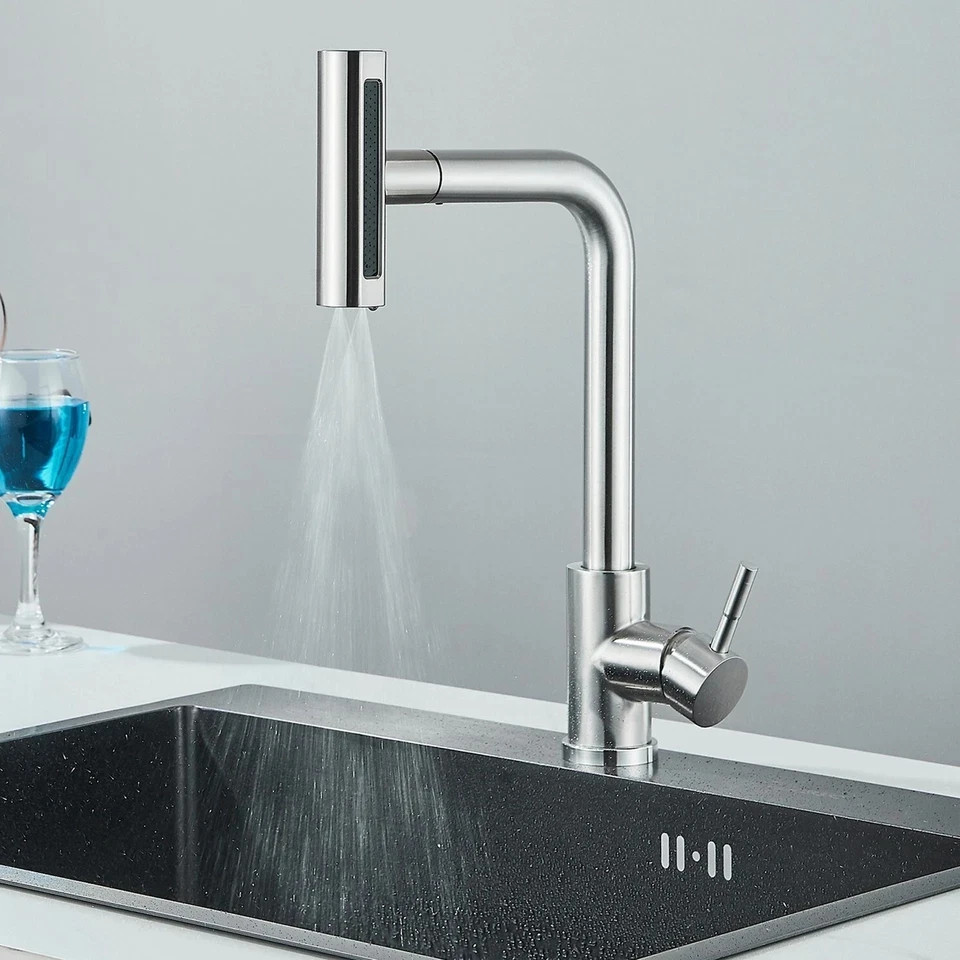 ✨: The 14-inch kitchen sink faucet with sprayer makes rinsing dishes, washing food, and cleaning countertop effortless. It's perfect for filling deep pots or large containers. Enjoy precise water control and increased efficiency in your daily tasks. · ✨: Switch between three spray modes—Sweep, Stream, and Waterfall. Use Sweep for powerful, wide coverage; Stream for precise water flow; and Waterfall for a gentle, elegant flow. Perfect for rinsing dishes, washing vegetables, or cleaning larger containers with ease. · ✨: Install your kitchen faucet in under 25 minutes—no plumber required! All necessary parts are included, and clear instructions make it simple. Saving you both time and money. · ✨: Made from food-safe 304 stainless steel, this kitchen faucet offers excellent corrosion and wear resistance for a longer lifespan. Its anti-fingerprint and easy-clean features ensure convenient maintenance, making it a reliable and stylish addition to your kitchen. · ✨: The ergonomic single handle kitchen faucet with sprayer design allows easy control of both water flow and temperature with one hand. This makes multitasking effortless, helping you save time and making kitchen tasks smoother. Ideal for all family members, young or old. · ✨: Built with a premium ceramic cartridge and precise seals, our long reach kitchen faucet guarantees a leak-free experience. With over 500,000 successful tests, you can trust this dependable kitchen fixture to ensure a more comfortable life. · ✨: The modern, sleek brushed nickel kitchen faucet finish enhances the look of any kitchen, from modern to classic styles. Its clean, minimalist design fits seamlessly into both small and large sinks, adding a touch of sophistication to your space.
