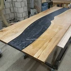 Kitchen Table Natural Resin River Black Acacia Wood Epoxy Table Resort Decors