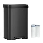 [Spacious Solution for Big Families] This 13-gallon trash can offers a large interior volume, catering to the needs of big families. It saves you from the inconvenience of frequent trips between the kitchen and curbside bin to empty it [User-Friendly Pedal] The 7.8" wide pedal provides a comfortable stepping surface, making it effortless to open the lid. It is crafted from sturdy stainless steel for long-lasting durability [Quality Stainless Steel] Made from stainless steel, this trash can is rust-resistant and easy to clean. It adds a stylish modern touch to any kitchen [Soft-Close & Stay-Open] This garbage can has a lid that closes quietly and gently without slamming shut. Additionally, you can easily keep the lid open by manually opening it to a catch point when dealing with large clean-ups [Thoughtful Detailing] The carbon filter in the lid helps absorb unpleasant odors, keeping your kitchen smelling fresh. Included are 15 liner bags (12-14.5 gallons) that perfectly fit this kitchen can Product Dimensions : 15.9 x 15 x 23 inches; 9.5 Pounds