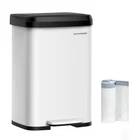Kitchen Trash Can, 13 Gallon (50 L) Stainless Steel Garbage Can,White and Black
