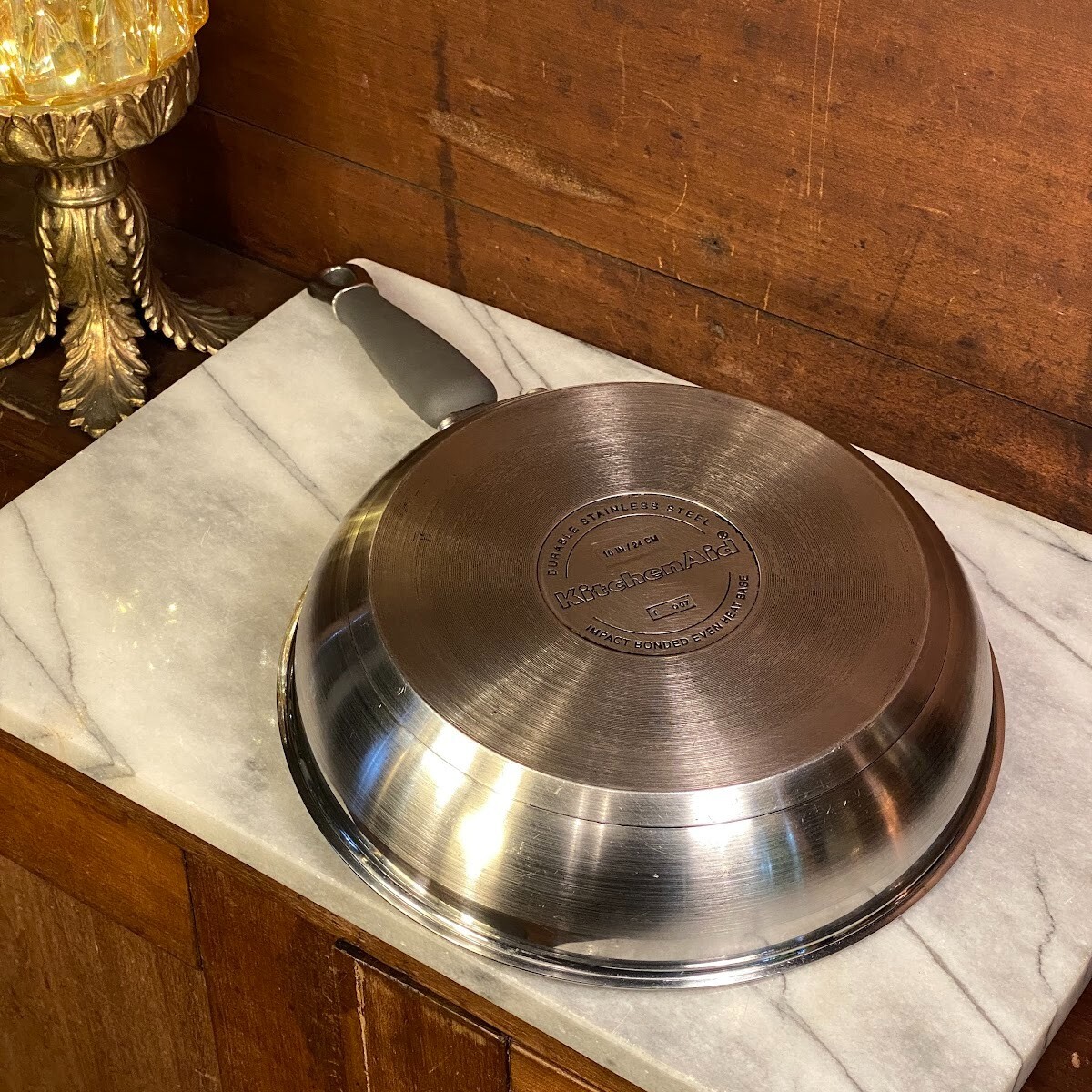 This listing features a KitchenAid Stainless Steel 10" Fry Pan. Color: Silver. Please view all photos as they are part of the description. Condition: Pre-Owned, Great condition. There are some marks and signs of use, shown in photos. Overall, it has tons of use left. Smokefree home. I have more cookware available; I would be happy to make a bundle deal on multiple pieces. Please message me if you have any questions. For more unique finds, please visit my eBay store.