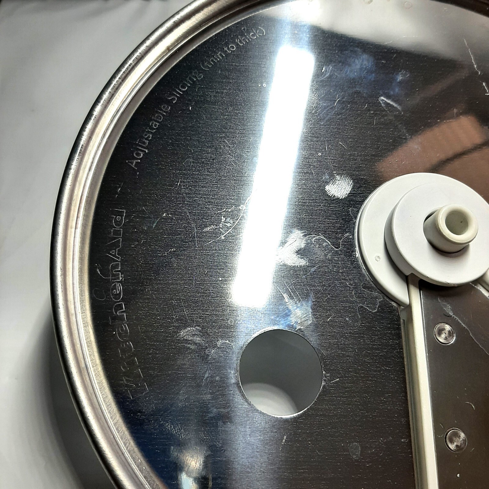 KitchenAid 13 Cup Food Processor Adjustable Slicer Blade Disc KFP1333 KFP1344 Sold as USED In - VERY GOOD CONDITION - Visible Use Wear (scuffs/scratches) - No Cracks Breaks - KFP1333 KFP1344 13 Cup Food Processor Adjustable Thickness Slicer Slicer Disc Blade - Replacement - As Seen In Photos "Click Visit MyBigMessyGarage HERE to view my full range of products"