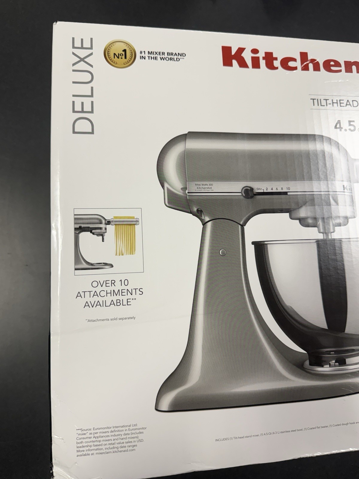 KitchenAid Deluxe Stand Mixer 4.5 qt - Contour Silver - (KSM97CU) This Kitchen Aid Mixer Is In Brand New Sealed Condition. The KitchenAid Deluxe Stand Mixer 4.5 qt in Contour Silver (KSM97CU) is a versatile appliance designed for whipping, blending, and beating tasks in the kitchen. With a powerful 300W electric motor and 10 different speeds, this standalone mixer allows for precise control over dough and baked goods. The 4.5 qt capacity and included stand make it convenient for various mixing projects, while the sleek silver finish with a nickel accent adds a stylish touch to any kitchen. With the KitchenAid brand reputation for quality and durability, this mixer is a dependable and efficient addition to any home chef's collection. PWII 184677-1 All Merchandise Over $100 Will Be Shipped With Insurance! Pictures are of actual Product, Everything Pictured is What is Included in Our Lots, No Additional Items will be added on the side such as power cords or accessories if they are not pictured. Don’t Sweat it, you’re being treated by Kingman’s finest Pawn Shop. We inspect and test all of our product to guarantee high quality merchandise. We have everything ranging from Collectables, Jewelry, Coins, Sports memorabilia, Instruments, and heavy tools. We also have lots of hunting gear, automotive accessories, and cameras/audio equipment. AJJ