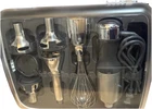 Portable 5 speed Kitchen Aid Immersion Handheld Mixer Blender, new open box in excellent condition. A wonderful multifunctional item to have in your kitchen. Included are 7 parts: handheld blender and attachment plus storage case. All items are shown in photos posted.