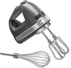 From the manufacturer KitchenAid Hand Mixers The KitchenAid Hand Mixer provides you with the power and control to mix up your favorite cookie dough, mash potatoes and so much more. Hand Mixers Various speeds to mix every recipe to the desired consistency; mix from a slow stir to a high whip. 9 Speed with Accessories 7 Speed with Whisk Cordless 7 Speed 6 Speed with 5 Speed Add to Cart Add to Cart Add to Cart Add to Cart Add to Cart Customer Reviews 4.7 out of 5 stars 7,546 4.6 out of 5 stars 10,027 4.6 out of 5 stars 266 4.6 out of 5 stars 2,516 4.6 out of 5 stars 25,058 Price $109.99 $ 109 . 99 $89.99 $ 89 . 99 $139.95 $ 139 . 95 $79.95 $ 79 . 95 $59.95 $ 59 . 95 Speeds 9 7 7 6 5 Cord Type Corded Corded Cordless Corded Corded Lockable Swivel Cord Cordless Beater Ejector Button Beater Type Stainless Steel Turbo Beater II Stainless Steel Turbo Beater II Stainless Steel Turbo Beater II Flex Edge Beaters Stainless Steel Turbo Beater Pro Whisk - no data - no data Dough Hooks - no data - no data - no data - no data Blending Rod - no data - no data - no data - no data Storage Features Bag - no data Removable Battery Clip - no data Available Colors Candy Apple Red, Contour Silver, Empire Red, Onyx Black, White Contour Silver, Empire Red, Liquid Graphite, Onyx Black, White Black Matte Contour Silver, Empire Red, Ice Blue Aqua Sky, Black Matte, Empire Red, Tempest Grey, Ice, Onyx Black, White Features Soft Start Feature Brings the beaters up to the selected speed gradually to help prevent ingredients from splattering. Lockable Swivel Cord Lock the cord into either the left or right side of the mixer so you can approach ingredients from any angle. The round cord is easy to wipe clean. Beater Ejector Button Easily and quickly remove any accessory from the hand mixer with the single-handed press of a button. Stainless Steel Turbo Beater II Accessories The Stainless Steel Turbo Beater II Accessories are ideal for mixing heavy ingredients. Dishwasher safe. Product Description Make even more with your hand mixer, everyday, with this 7 Speed Hand Mixer that comes standard with Stainless Steel Turbo Beater II Accessories and a Pro Whisk. This hand mixer has the the right speed for the task at hand, from mixing in nuts & chocolate chips at speed 1, to whipping egg whites at speed 7. It's compact, lightweight, and guaranteed to thoroughly mix ingredients for all of your favorite recipes, and whip egg whites or heavy creams to fluffy peaks, to top off your perfect dessert.
