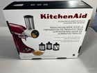 The KitchenAid Artisan Tilt Head 5 Quart Stand Mixer Milkshake Matte KSM150PSMH is a powerful electric standalone mixer with a 5 qt capacity and 10 speeds. It features a glossy milk white finish and convenient button controls for easy operation. This model includes a stand for stability and is designed for efficient mixing and blending tasks in the kitchen. The KitchenAid brand is known for its quality and durability, making this stand mixer a reliable choice for any home cook. This item is new in box and includes a free cheese grater attachment. (Also new in box) Both items will be shipped in one box. Free shipping. No returns on this item. Warranty issues must be handled with the manufacturer. These items were won as part of a silent auction and are duplicates in our household.