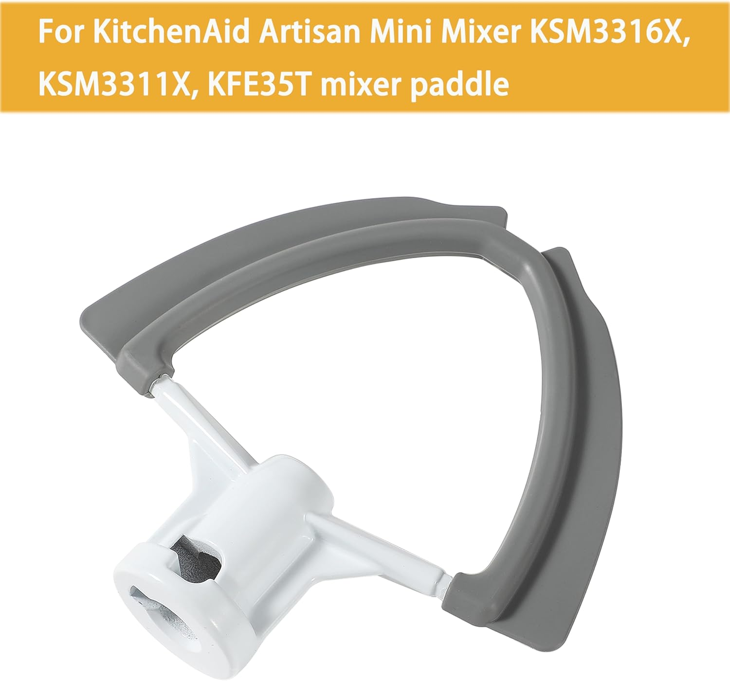 Designed for Kitchen-Aid Artisan Mini KSM3316X, KSM3311X Ttand Mixers. The double silicone edges of the paddle definitely helps mix the ingredients more thoroughly. Absolutely a must have accessory if you make cookies or frosting often. Don't have to stop Kitchen-aid to scrape the bowl, this beater is a perfect solution to incomplete mixing. This paddle is crafted from die-cast aluminum, with nice thick flexible silicone blades. Easy attachment and cleaning. Great for creaming butter and making heavy cookie dough. 3.5 Qt Flex Edge Beater for Kitchen-Aid Artisan Mini KSM3316X, KSM3311X, KFE35Ttand Mixer Accessory.