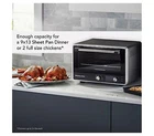 This convenient countertop oven makes it easy to cook everything from french fries to delicate fish and so much more. From KitchenAid. Includes oven, air fry basket, 9" x 13" baking pan, drip tray, and metal rack 1800W total power 360 air fry system Top and bottom heating element design Fits a 12" pizza or two 3.4-lb chickens Measures 16" x 17" x 11.3" Hand wash UL listed Imported