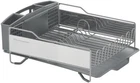 Large Dish Drying Rack with Angled Drainboard, Rust-Resistant, Removable Caddy SPACIOUS DESIGN FOR LARGE LOADS: This full size dish rack offers ample space for plates, mugs, glasses, bowls, utensils, and even larger items like pots and pans. Please refer to product dimensions to ensure an ideal fit for your countertop NON SLIP, STABLE BASE: Equipped with soft, anti slip feet, this dish rack stays securely in place, protecting surfaces and providing stability even on smooth countertops RUST RESISTANT, DURABLE COATING: Constructed with heavy duty satin coated steel wires, this dish rack is designed to resist rusting and stand up to daily kitchen use. To maintain optimal rust resistance, dry the rack and drainboard after use IMPROVED ANGLED DRAINAGE SYSTEM: The angled drainboard directs water straight into the sink, preventing pooling and keeping countertops dry. The board and rack are precisely aligned for smooth water flow and easy cleaning REMOVABLE FLATWARE CADDY WITH ADJUSTABLE COMPARTMENTS : The flatware caddy features adjustable sections to keep utensils organized. Its built in handle makes it easy to remove and unload directly into drawers or cabinets. Product Description The KitchenAid Full Size Dish Rack offers the perfect solution for quickly air-drying a variety of kitchenware. Featuring a spacious design, it can hold plates, mugs, glasses, bowls, flatware, pots, pans, and more. This drying rack features a flatware caddy, a dish rack, and a drainboard, and can be effortlessly assembled without tools. The soft, nonslip feet on the bottom keep it in place without scratching surfaces. The heavy duty, satin-coated, rust-resistant wires keep items secure and allow for airflow to quickly and efficiently dry dishes. Highly durable, this long-lasting rack stands up to daily use. The angled drainboard directs water right into the sink without pooling, allowing for smooth draining and keeping countertops dry. Plus, it’s removable for easy cleaning. The caddy features a built-in handle and adjustable compartments for keeping items separated and simple to find. It also detaches from the rack for easy unloading into drawers and cabinets. Hand wash only.