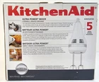 Introducing the KitchenAid 5 Speed Black Mixer, model KAM5APOB. This portable handheld mixer is perfect for all your mixing needs. Comes wirth beaters, dough hooks and liquid blender attachments. Included in the package is the mixer itself, and it comes in a sleek black color. Whether you're an avid baker or just need a reliable mixer for your kitchen, the KitchenAid 5 Speed Black Mixer is a great choice. With its brand reputation and advanced features, this mixer is sure to make your mixing tasks a breeze.