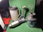 I haven't used this KitchenAid for several years. It was tested thoroughly however, and, it operates just as it should... perfectly! * KitchenAid Handheld Blender: KGB2352CU... works perfectly. * Food Processor...in like-new condition. * Whisk...in VG+ condition. * Chopper...in VG condition. * Pitcher/Carry Container -30°C + 100°C w/Black w/Spindle Spout/Lid...in VG condition. These guys are not new, but, they most assuredly operate like it. Buy with confidence & thanks for stopping by GalloGoodies!