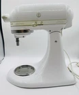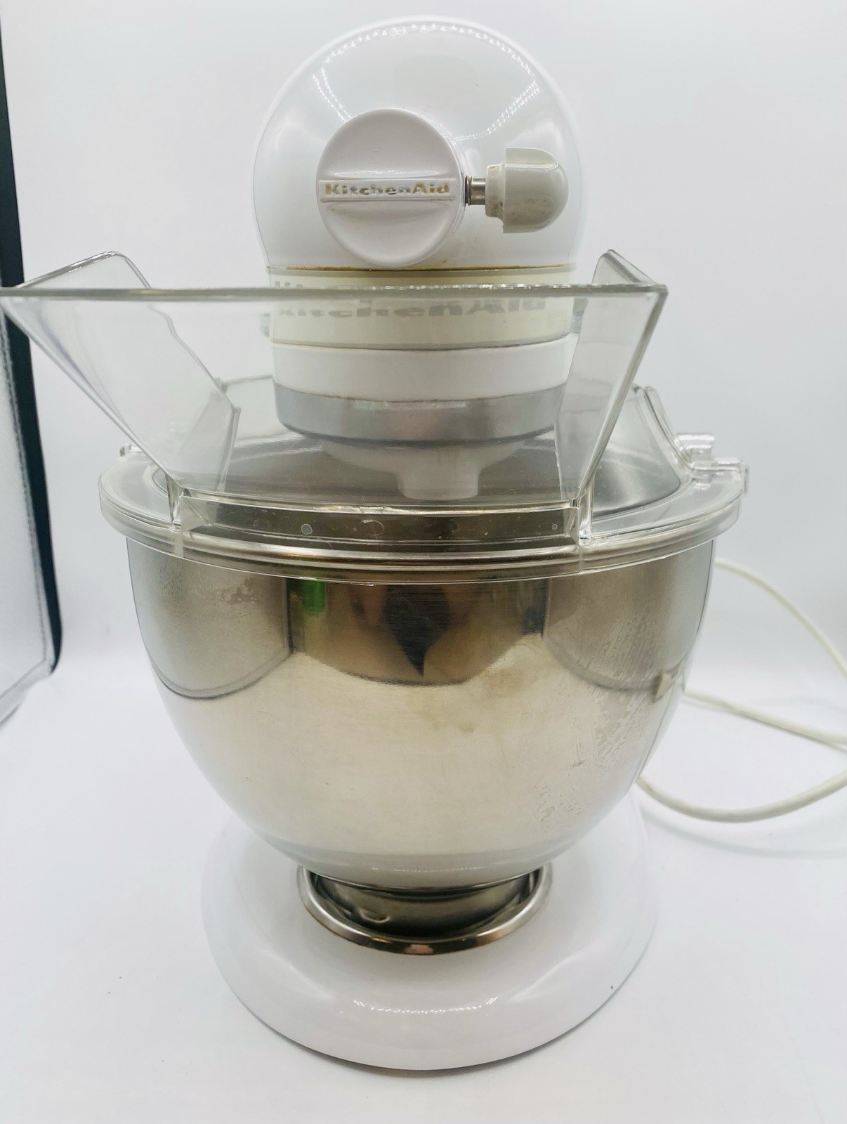 The KitchenAid Ultra Power Mixer KMS90 is a high-quality countertop mixer from the well-known brand KitchenAid. This model comes with a bowl and three mixing attachments, including a pour shield for convenient use. With its powerful motor and versatile attachments, this mixer is perfect for a variety of kitchen tasks, from mixing dough to whipping cream. The Kitchen Aid KMS90 is a reliable and efficient appliance that will make cooking and baking easier and more enjoyable. Works!
