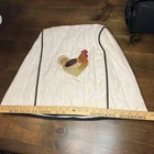 This is a great KitchenAid brand mixer cover with a beautiful embroidered chicken on it. It does show some wear but is still in great shape. I am a chicken fan but we are moving and I’m trying to simplify. White with black trim.