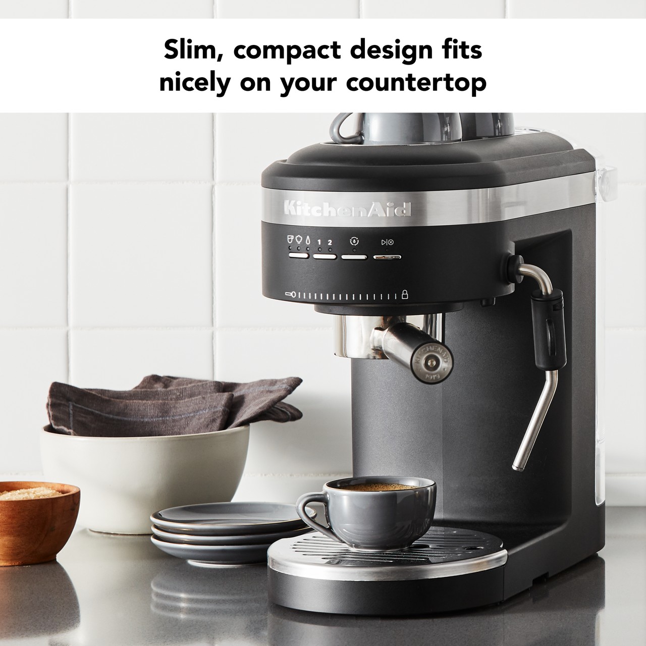 Creating quality espresso drinks at home is easy and fun with the KitchenAid® Semi-Automatic Espresso Machine. The same process used at the coffeehouse has been simplified for at-home use. Put your own personal twist on espressos, macchiatos, cappuccinos, martinis, affogatos… whatever you’re in the mood to make. Dual, smart temperature sensors maintain the perfect brewing temperature shot after shot. And the fast-heating thermocoil technology heats water up to the ideal brewing temperature in less than 40 seconds. Rich, creamy espresso is just a grind, tamp and brew away. Powered by Frooition All Categories KitchenAid , RKES6403 349.99 KitchenAid , RKES6403 349.99 Description Description Returns Shipping Warranty About Us Description Creating quality espresso drinks at home is easy and fun with the KitchenAid® Semi-Automatic Espresso Machine. The same process used at the coffeehouse has been simplified for at-home use. Put your own personal twist on espressos, macchiatos, cappuccinos, martinis, affogatos… whatever you’re in the mood to make. Dual, smart temperature sensors maintain the perfect brewing temperature shot after shot. And the fast-heating thermocoil technology heats water up to the ideal brewing temperature in less than 40 seconds. Rich, creamy espresso is just a grind, tamp and brew away. Consistent Temperature Control Personalized Specialty Espresso Drinks At Home Designed to Look Good and Last Stable Tamping for Quality Flavor Returns Returns All products sold by the official KitchenAid ebay store come with a 30-day return window. Shipping Shipping Free shipping on all orders with a 1-2 day handling time and should arrive within 4-5 business days or sooner. Orders to Alaska, Hawaii, Puerto Rico, and US Virgin Islands are shipped via USPS Priority 1st and delivered within 7-10 business days. Warranty Warranty This KitchenAid Certified Refurbished unit is covered under a 2-year warranty from Allstate, US only. About Us About Us "ShopKitchenaid" is the official KitchenAid eBay store and is the only authorized KitchenAid Retailer on eBay. ShopKitchenaid provides a factory warranty on all new and refurbished products purchased from the eBay store. Click here to view our full About Us details. More Items! View more great items! Home Shipping Contact About Powered by Frooition Frooition | No-js Template | eBay design, eBay store design, eBay shop design, eBay template design, eBay listing design (ver:froo_no_js) This listing is currently undergoing maintenance, we apologise for any inconvenience caused.