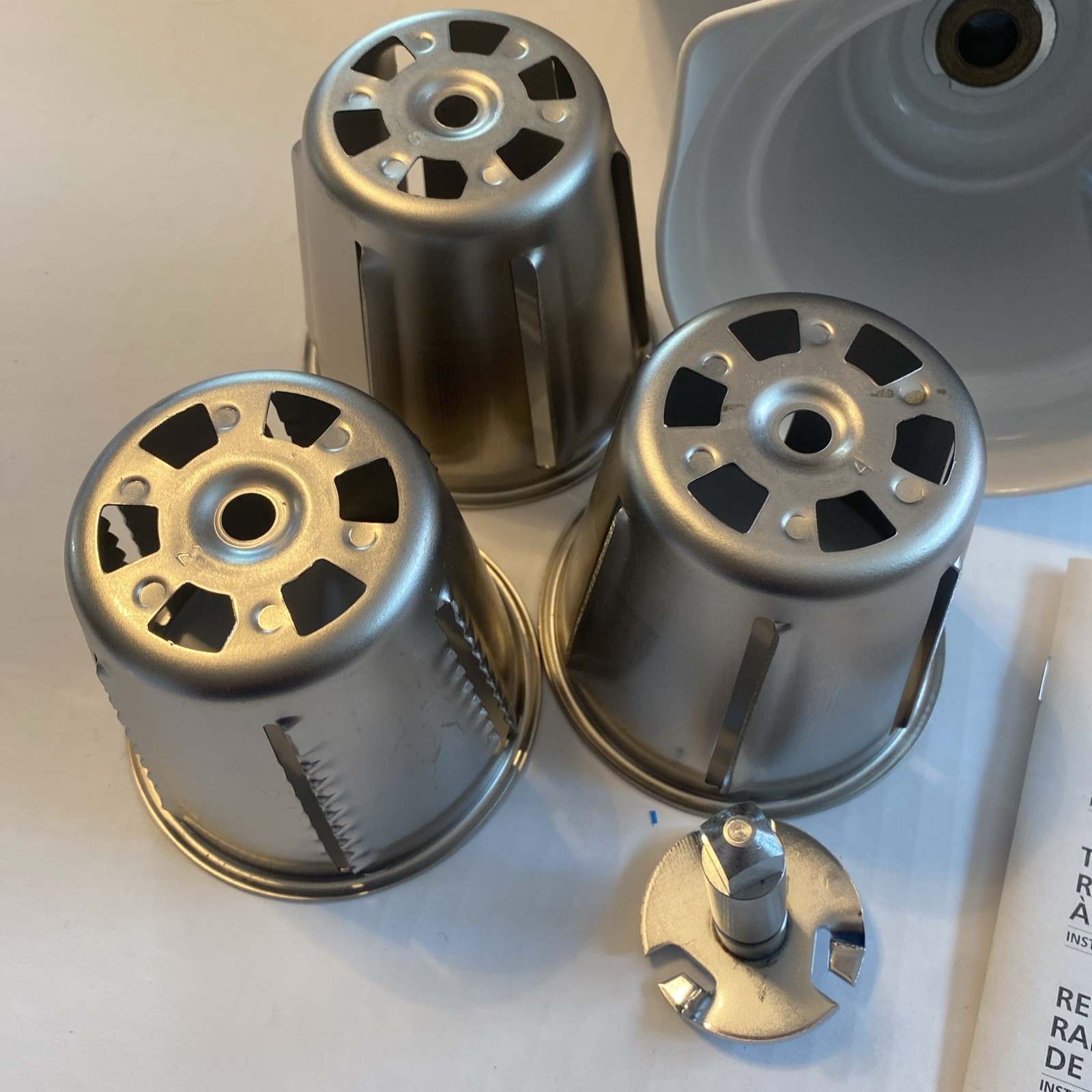 The KitchenAid Rotary Slicer/Shredder Mixer Attachment RVSA is a versatile accessory designed to complement your KitchenAid countertop mixer. It's an ideal tool for efficiently slicing fruits, vegetables, and more, helping you prepare meals with precision and ease. The attachment comes in a classic white color, seamlessly integrating with your existing KitchenAid appliance. With the RVSA model, you can say goodbye to the hassle of manually slicing and shredding. This attachment is compatible with a range of KitchenAid machines, ensuring a snug fit and reliable performance. Whether you're a home chef or a meal prep enthusiast, this slicer/shredder attachment will streamline your kitchen tasks and enhance your culinary creativity. The RVSA comes with three different cutting blades, the thick slicer, the thin slicer, and the course shredder. It does not have the fine shredder with this set.