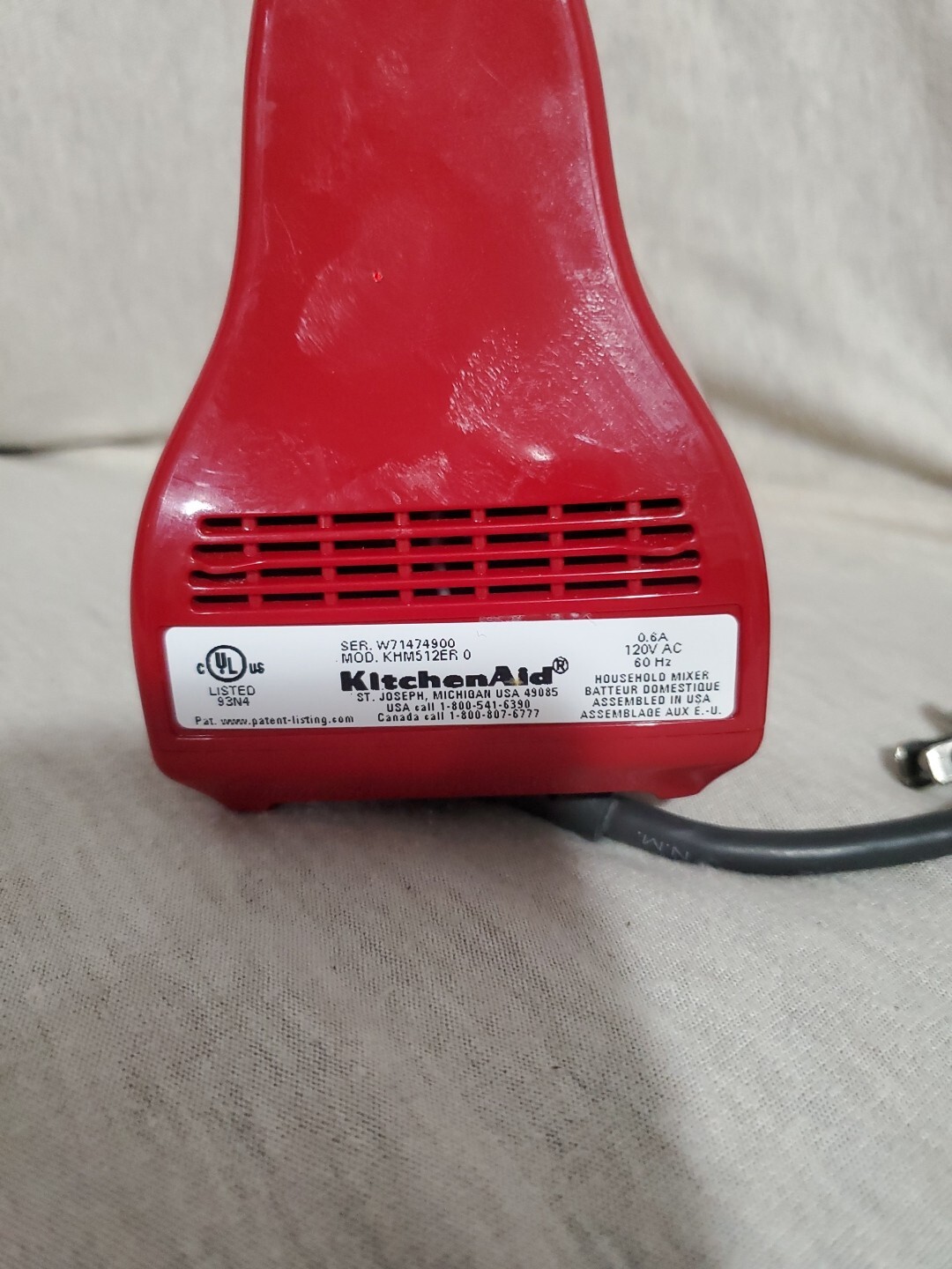 KitchenAid Ultra Power 5-Speed Hand Mixer in Empire Red KHM512ER Tested and Working